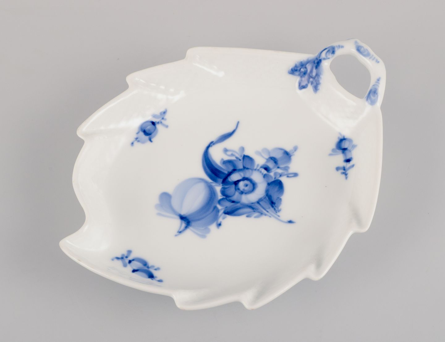 Royal Copenhagen, Blå Blomst Flettet, bladformet asiet med hank.