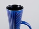 Carl Harry Stålhane for Rörstrand, høj og slank keramikkande i blå og bordeauxfarvet toner. 1960’erne. Stemplet. Første sortering. Perfekt stand Mål: H 35,7 cm. x D 10,0 cm. inklusive hank.