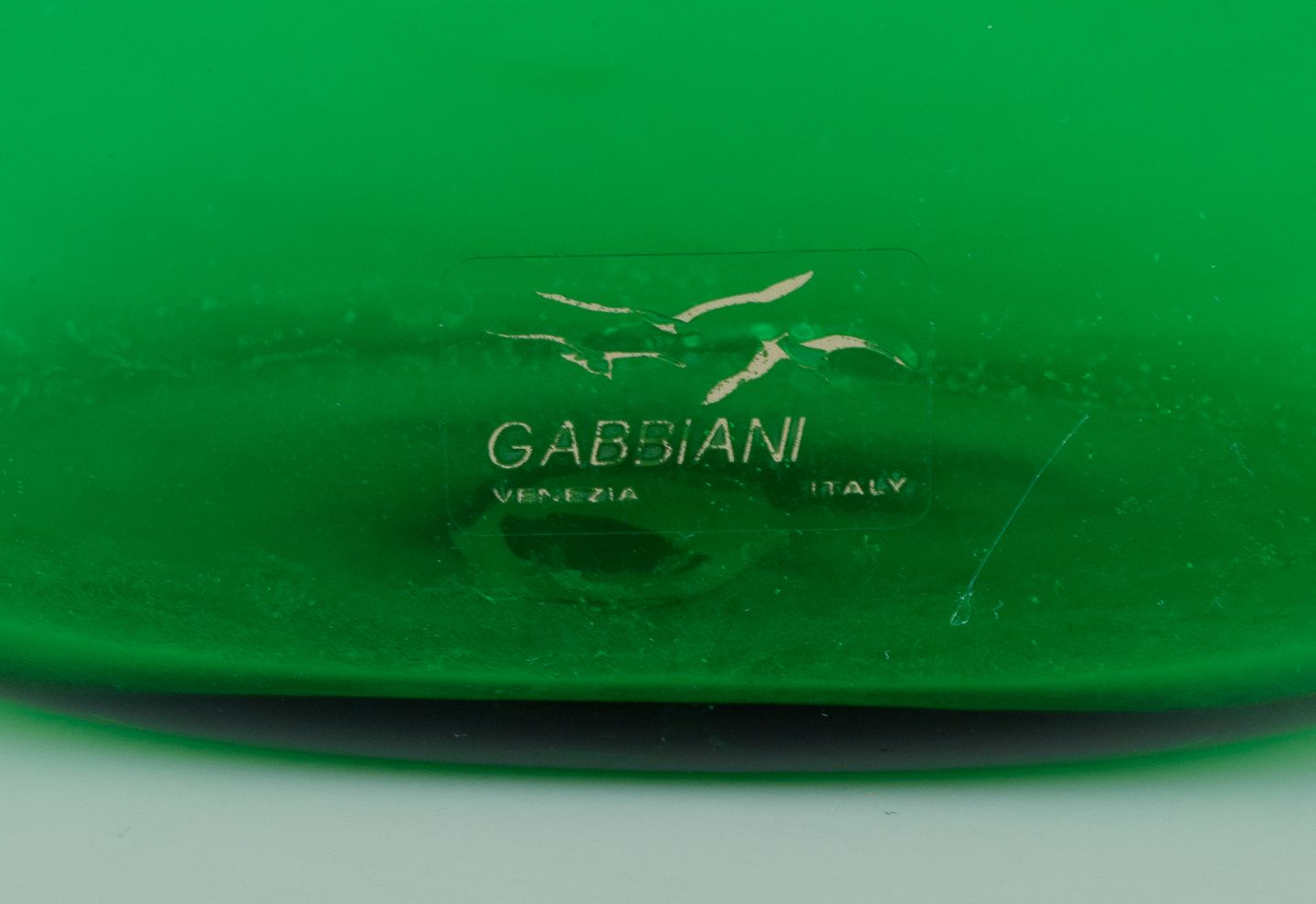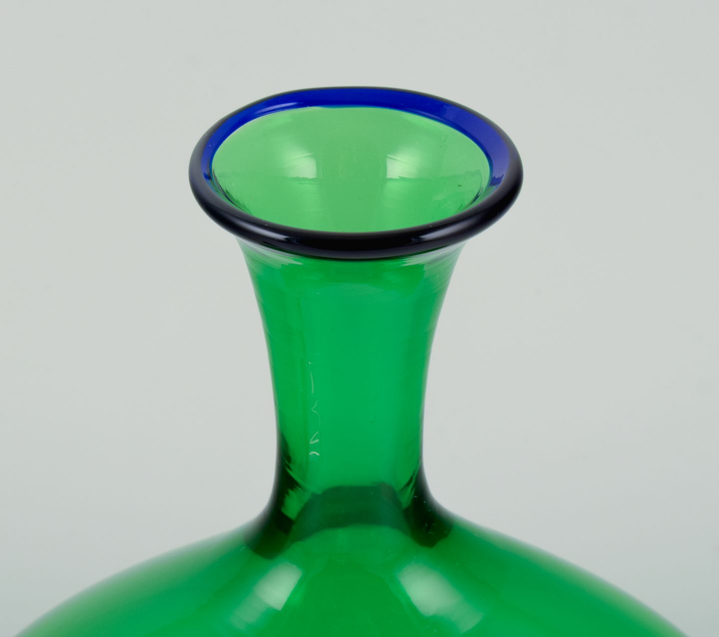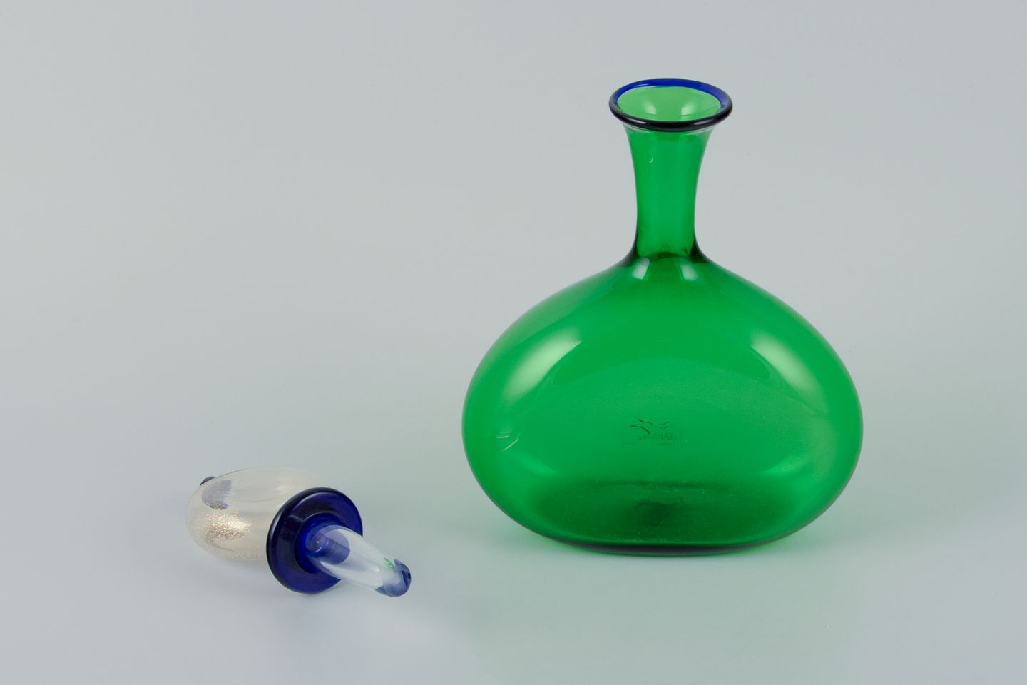 Gabbiani, Venedig, Italien, karaffel i grønt kunstglas med tilhørende prop. 1980’erne. Etiket. Perfekt stand. Mål: H 29,5 cm. x D 16,5 cm.