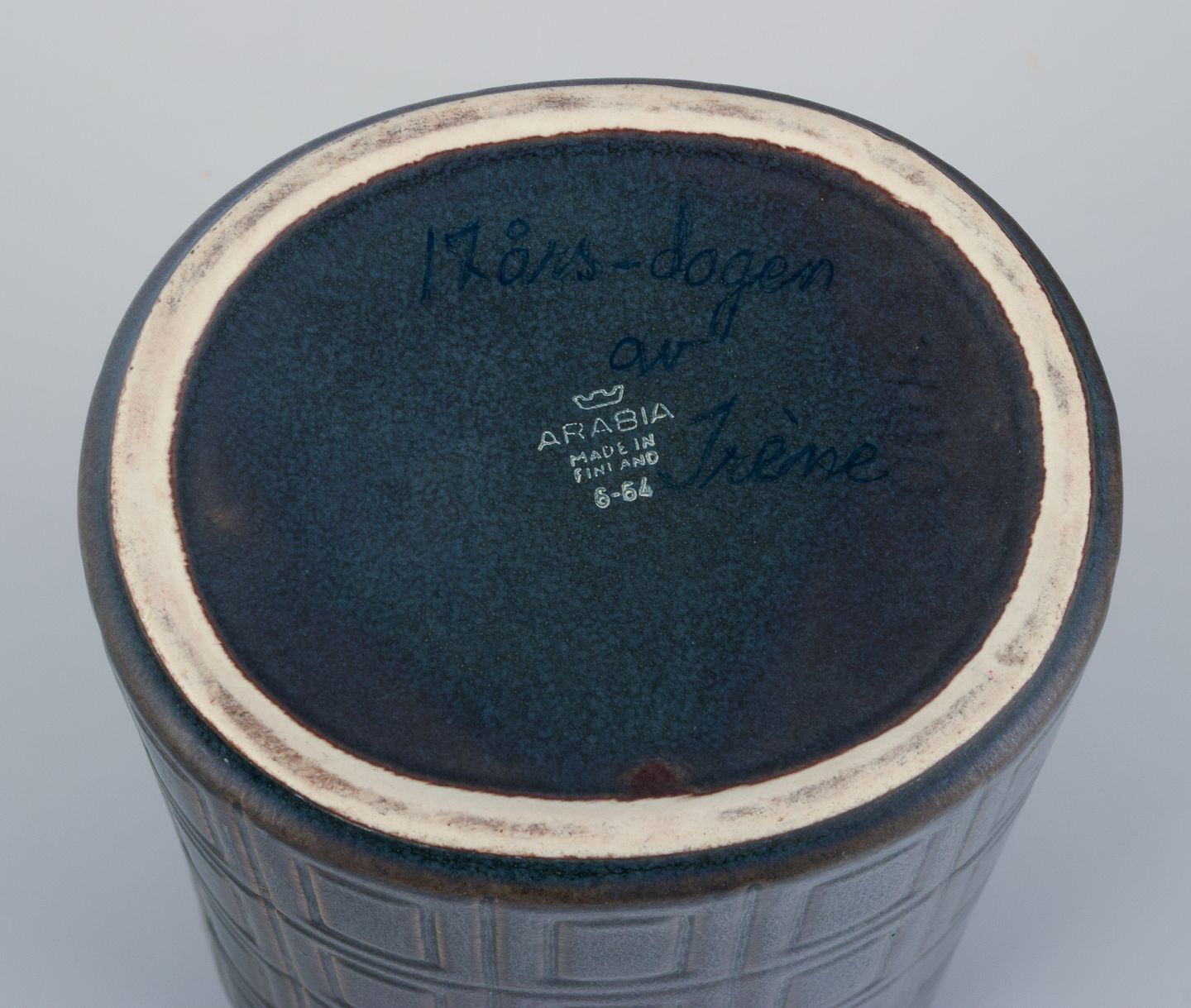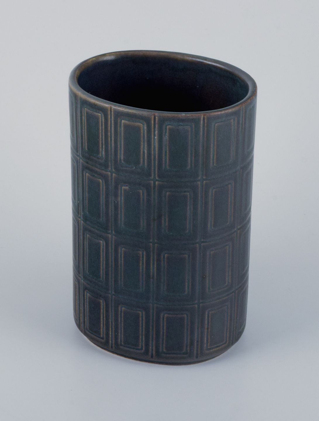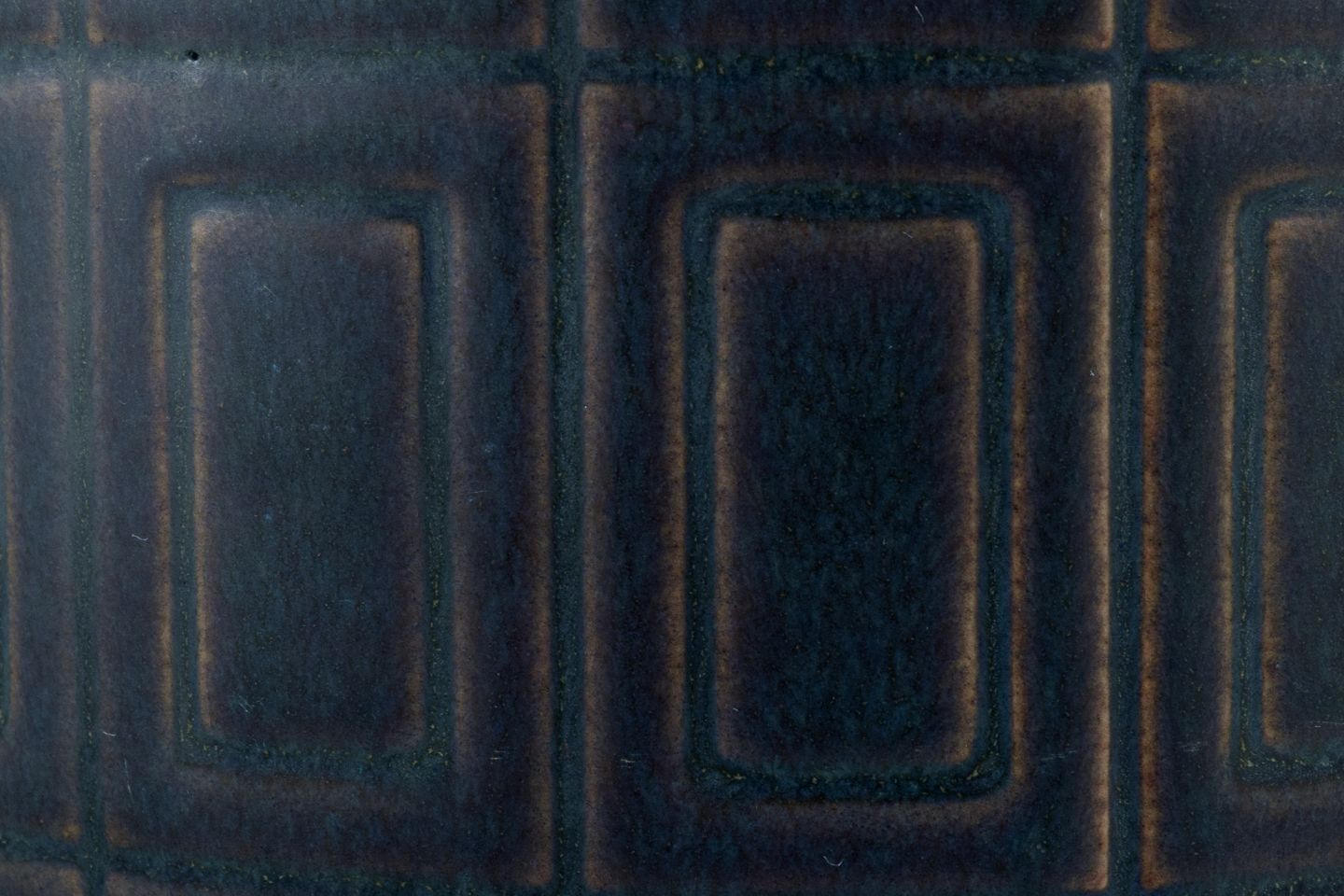 Arabia, Finland, keramikvase med glasur i blåviolette toner. Geometrisk motiv. 1960’erne. Stemplet. Perfekt stand. Mål: H 17,5 cm. x D 12,0 cm.