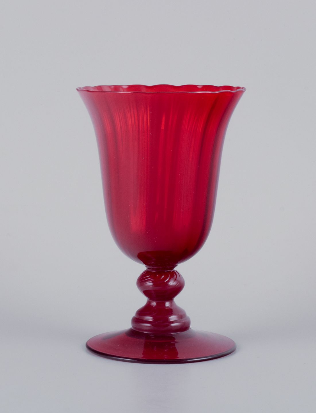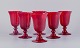 A set of six large wine glasses in red glass. Sweden. Late 20th century. Perfect condition. Dimensions: H 14.8 cm x D 9.6 cm.