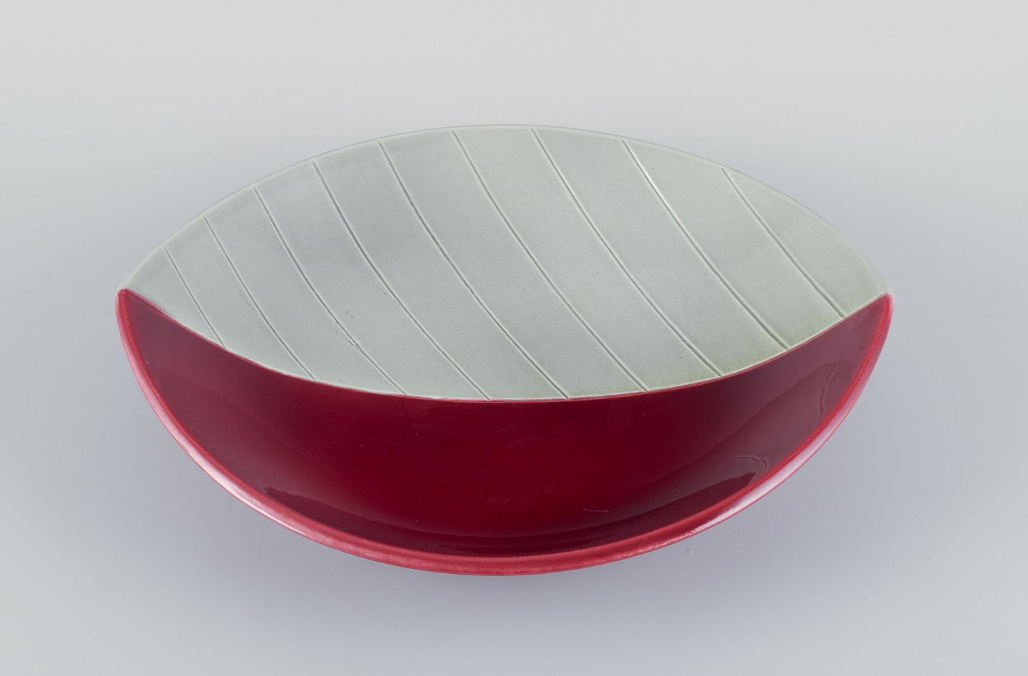 Carl Harry Stålhane for Rörstrand, Sverige, en stor ”California” skål i keramik med violet og grå glasur. Stilrent design.