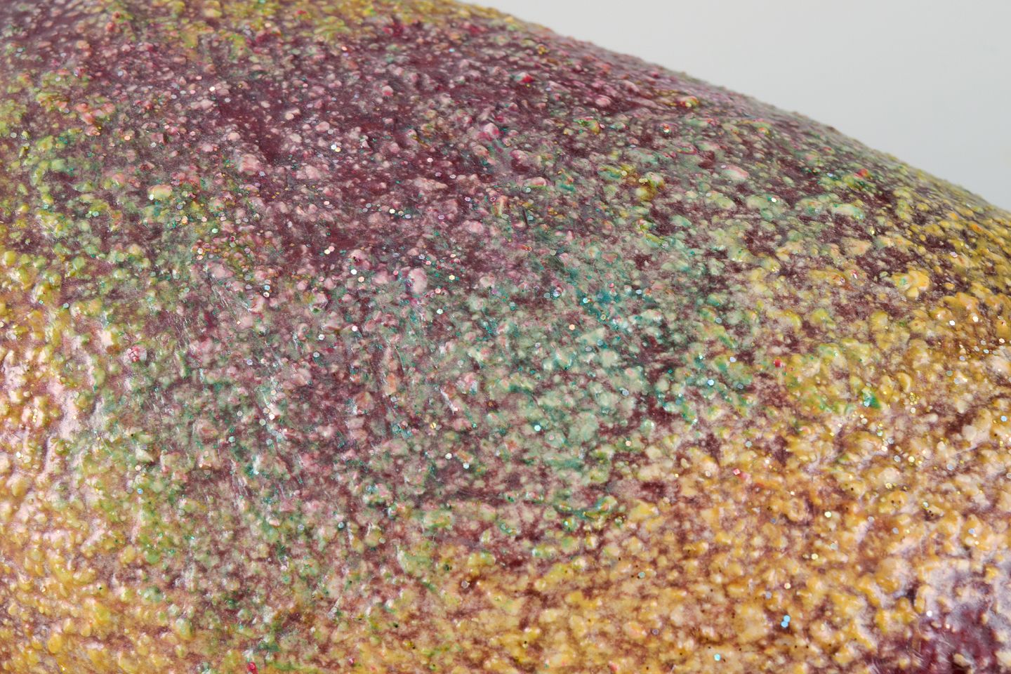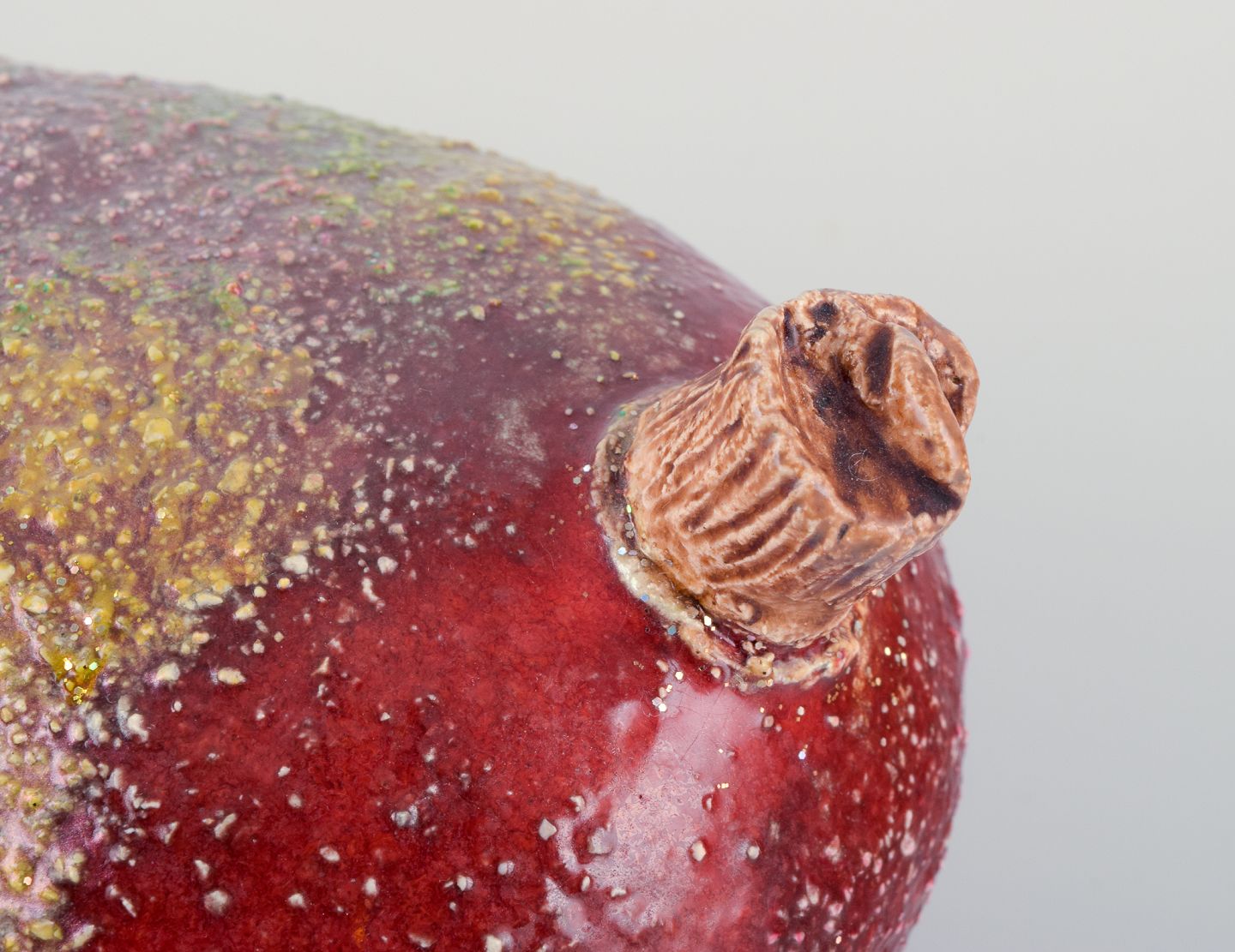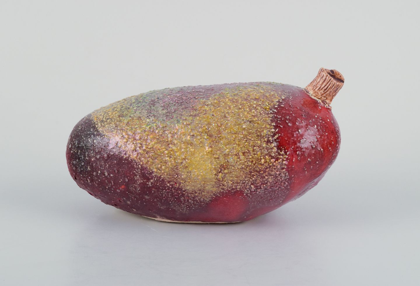 Linda Mathison, Swedish contemporary ceramic artist, unique ceramic sculpture in an organic form with red and green tones.