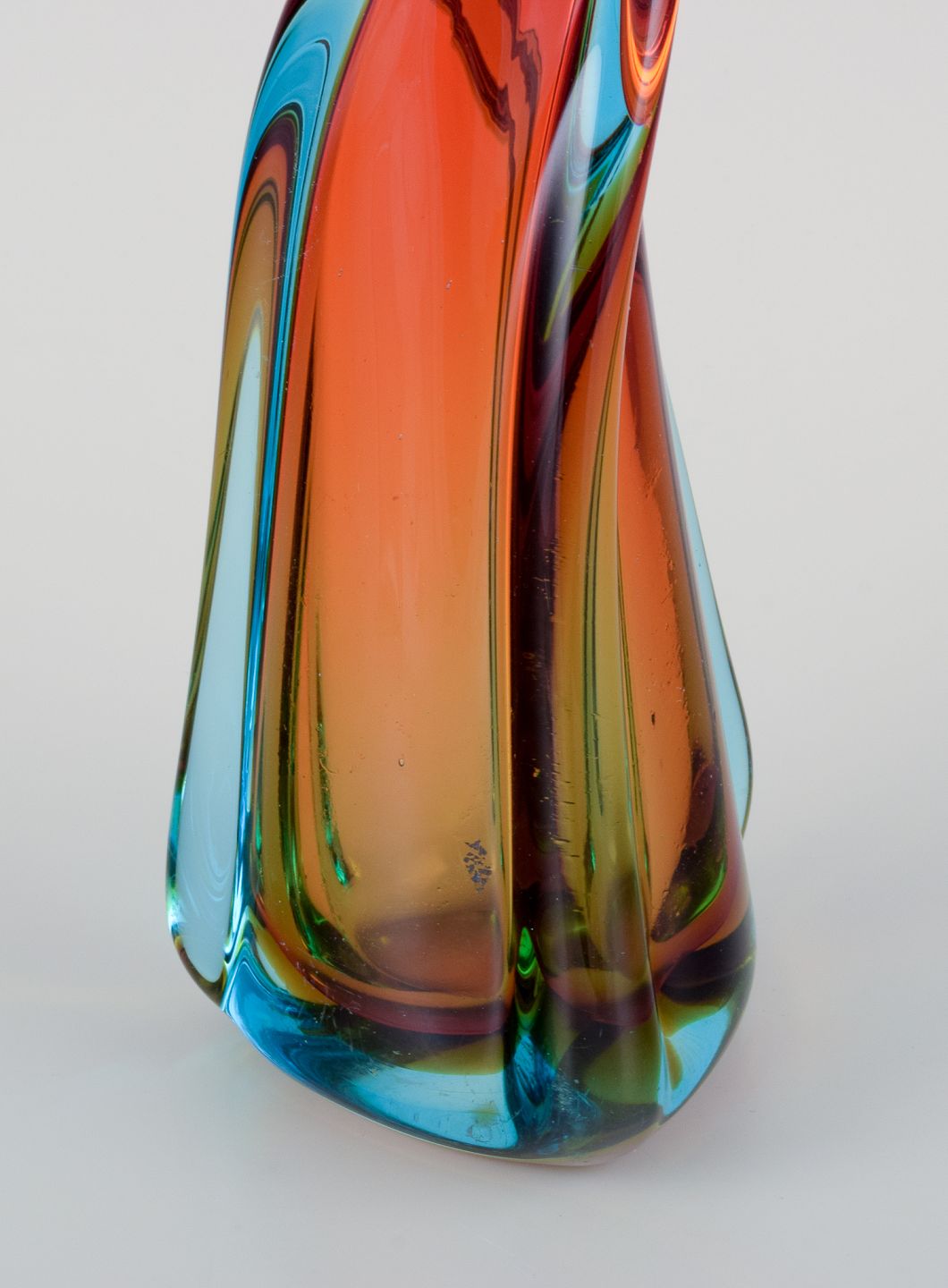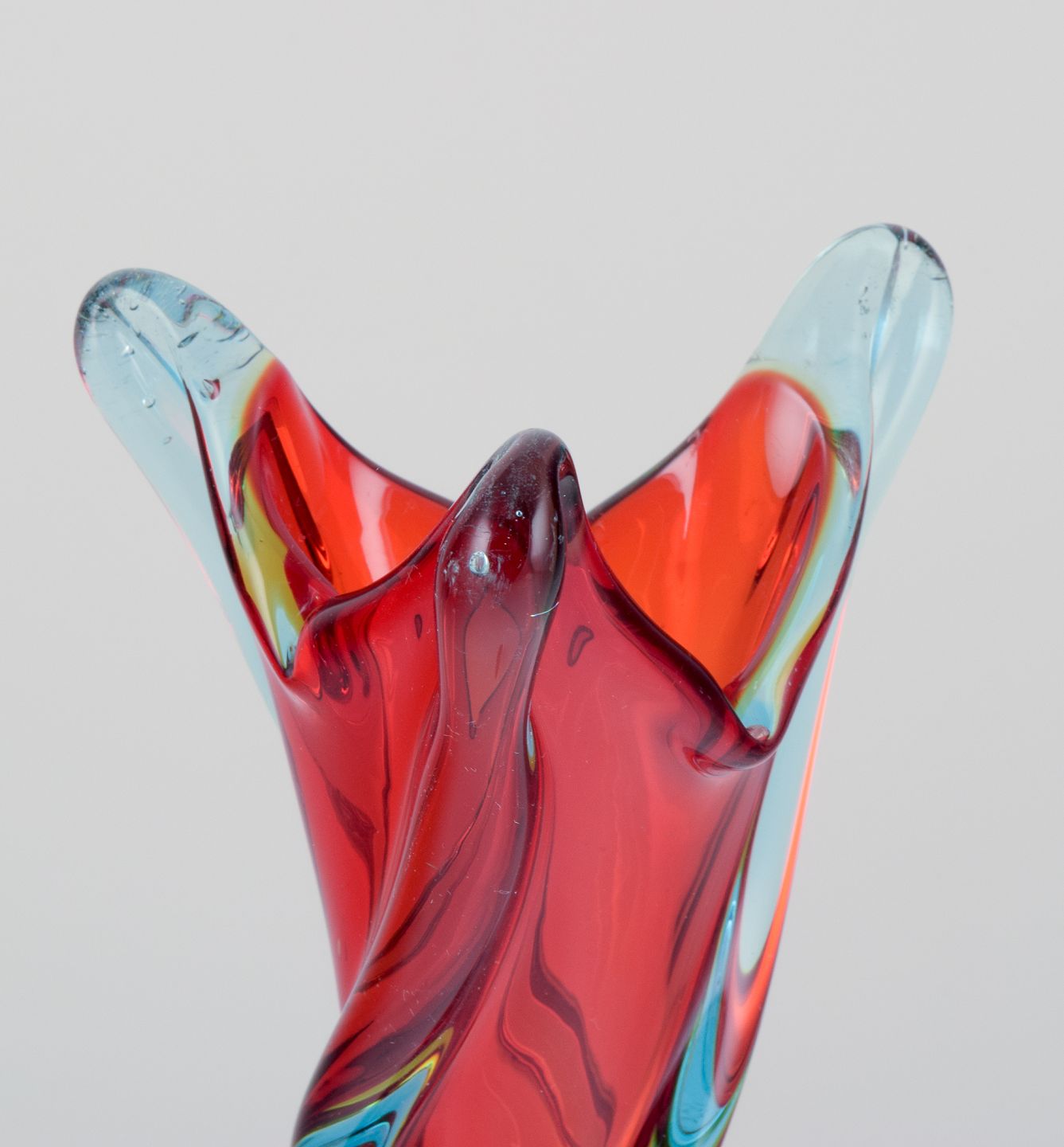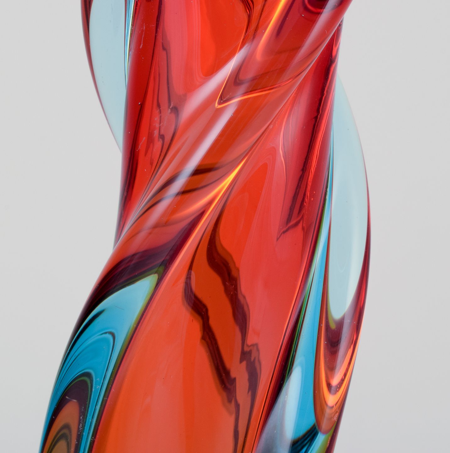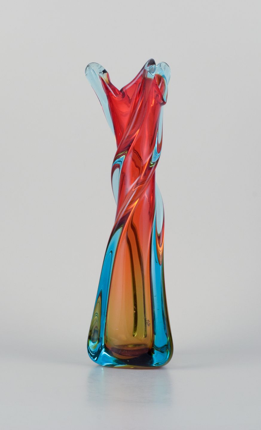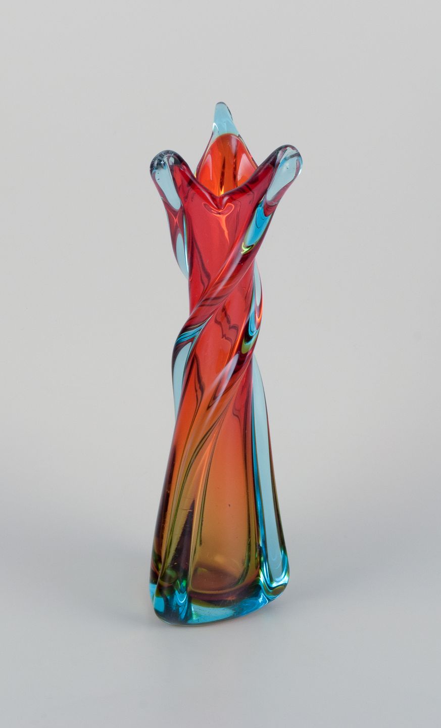 Murano, Italy, large mouth-blown and twisted art glass vase in blue and red. From the 1960s/70s. In beautiful condition with minimal signs of use. Dimensions: H 33.0 cm x D 9.5 cm.