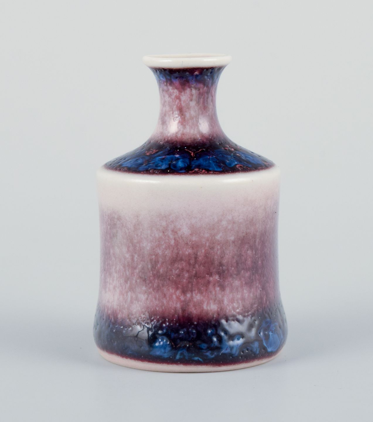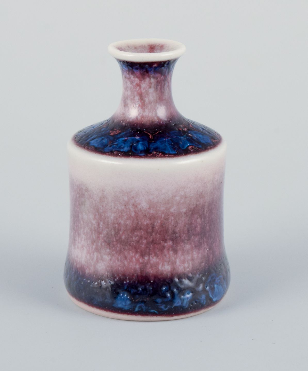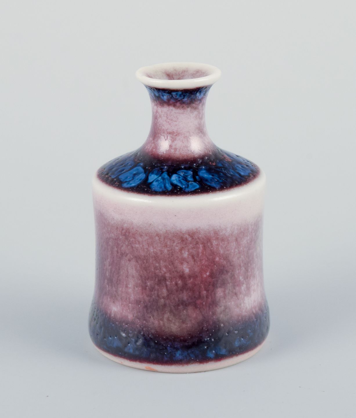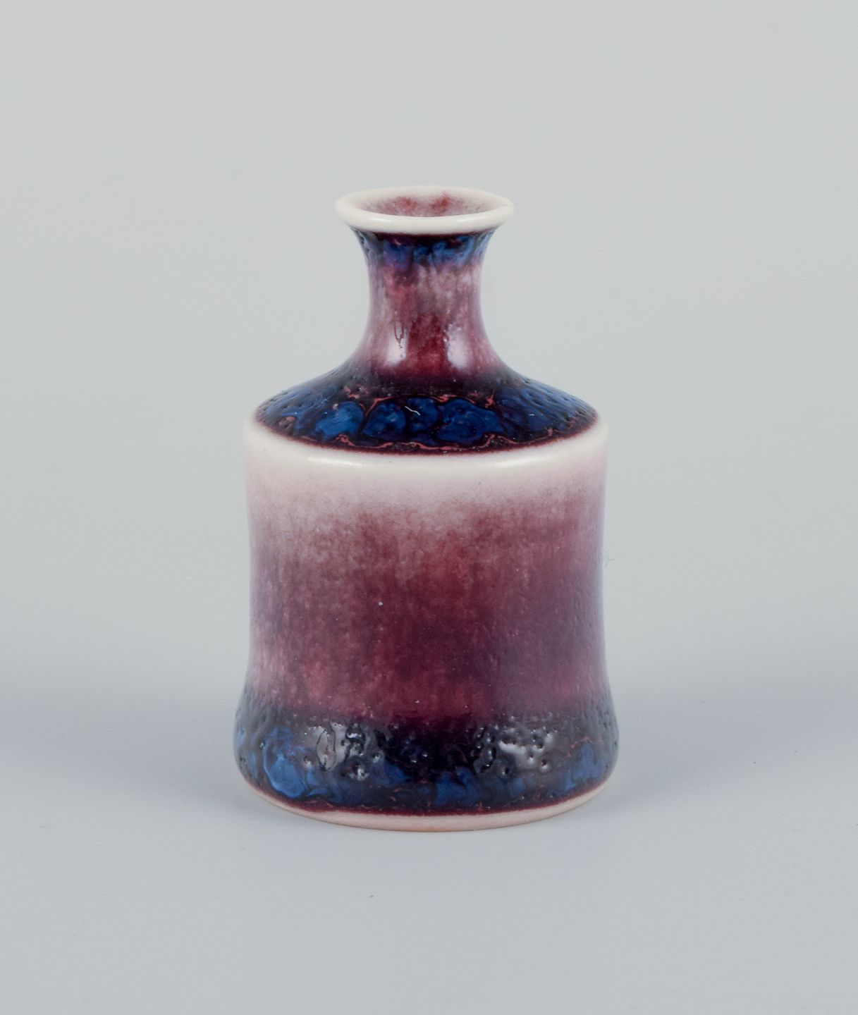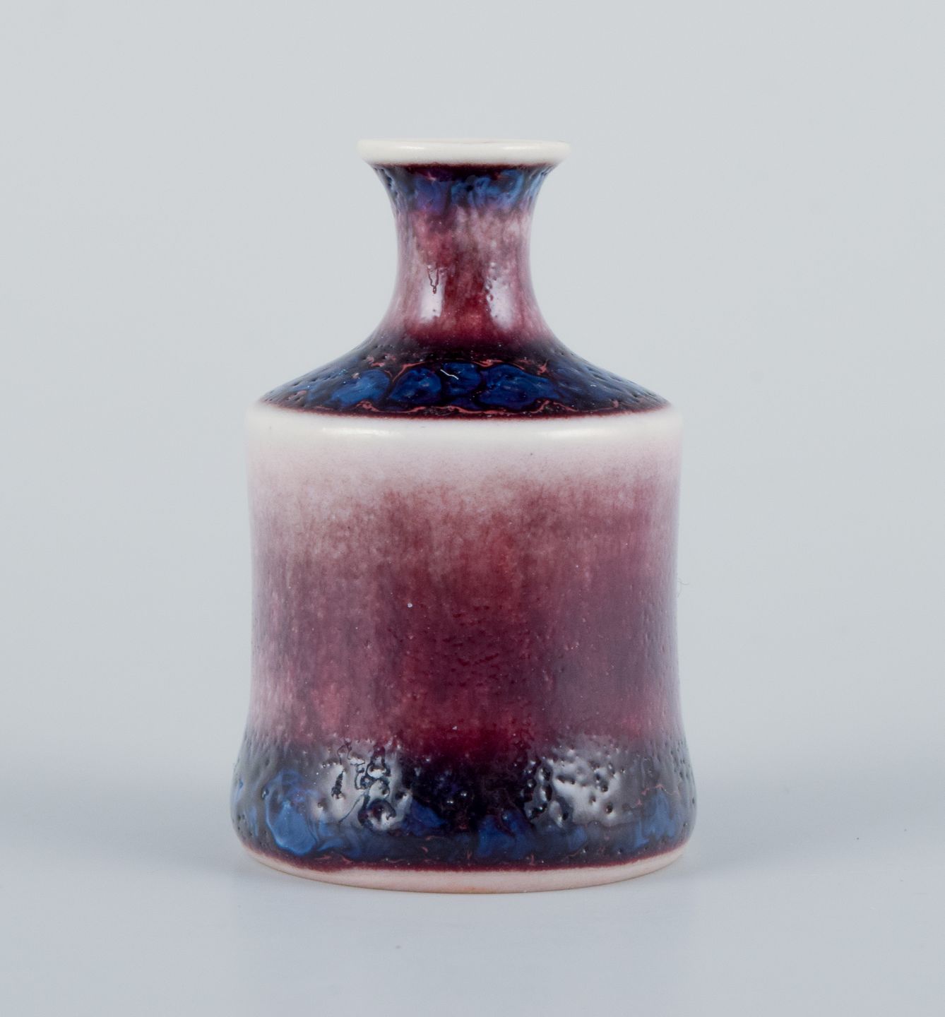 Stig Lindberg (1916-1982), Gustavsberg - Studio Hand, miniature vase with glaze in blue and red tones. From the 1960s. Signed. In perfect condition. Dimensions: H 40 mm x D 28 mm.
