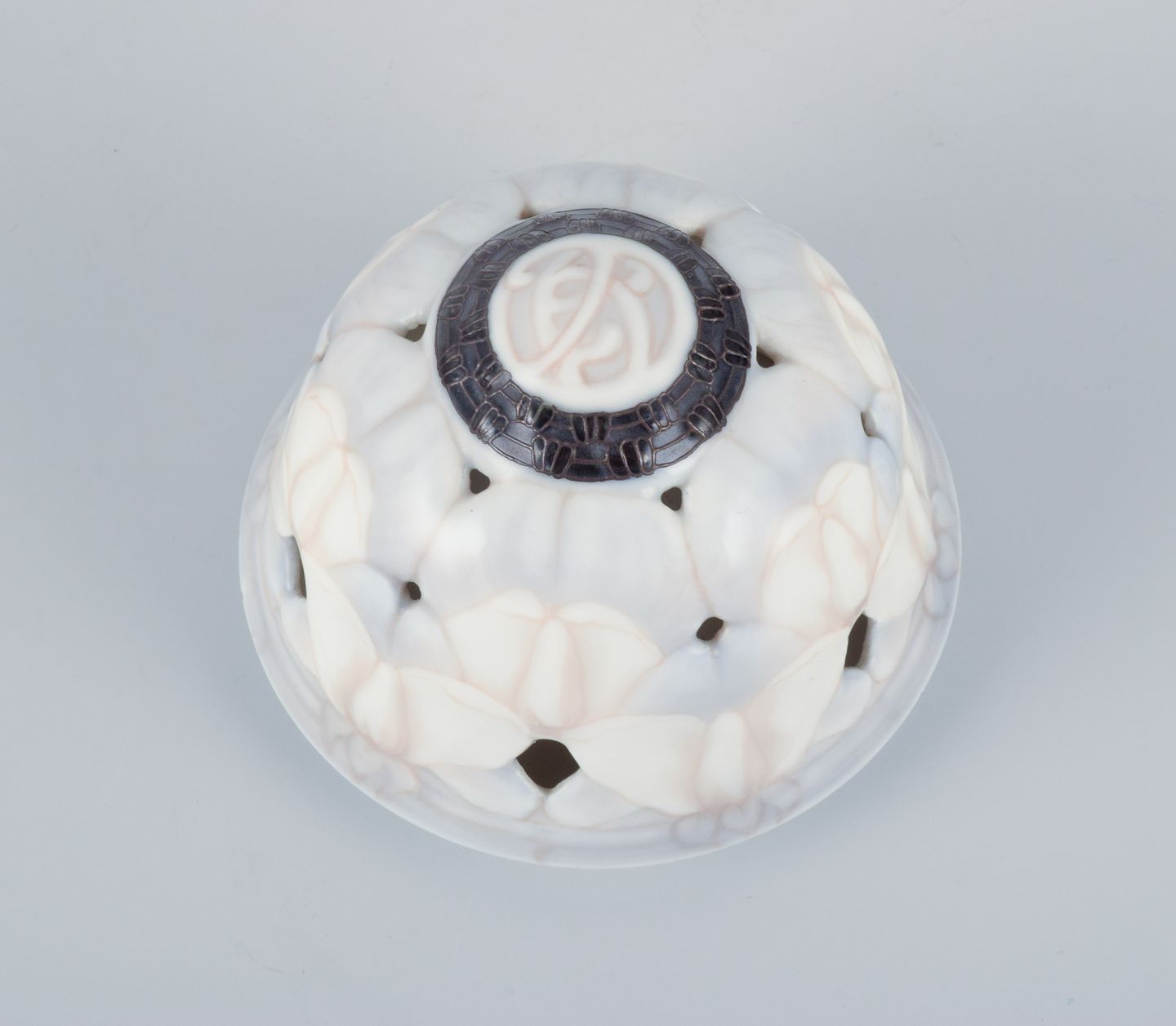 Jo Hahn Locher for Bing & Grøndahl, stor og imponerende art nouveau lågvase i porcelæn. Gennembrudt i toppen. Museumskvalitet.