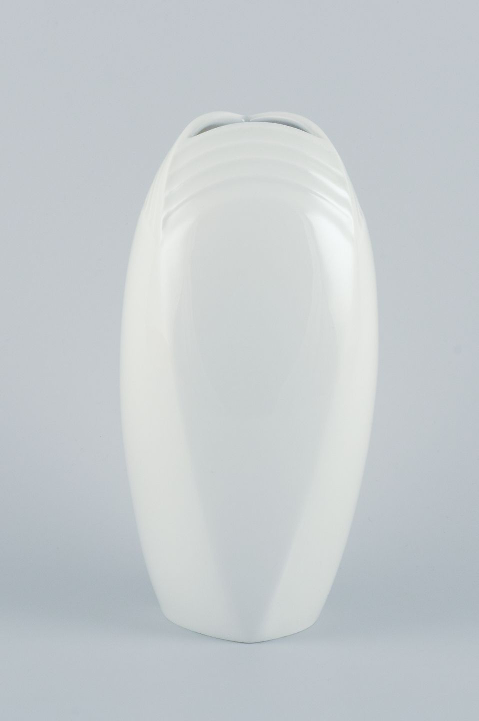 Hans Merz for Meissen, stor porcelænsvase i moderne design med geometriske felter og hvid glasur. Modelnummer 50250. Ca. 1970’erne. Stemplet. Første sortering. Perfekt stand. Mål: H 24,0 cm. x D 9,5 cm.