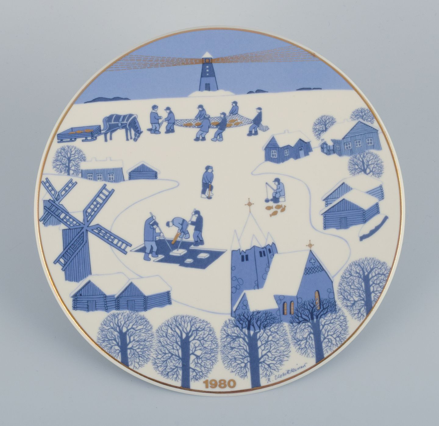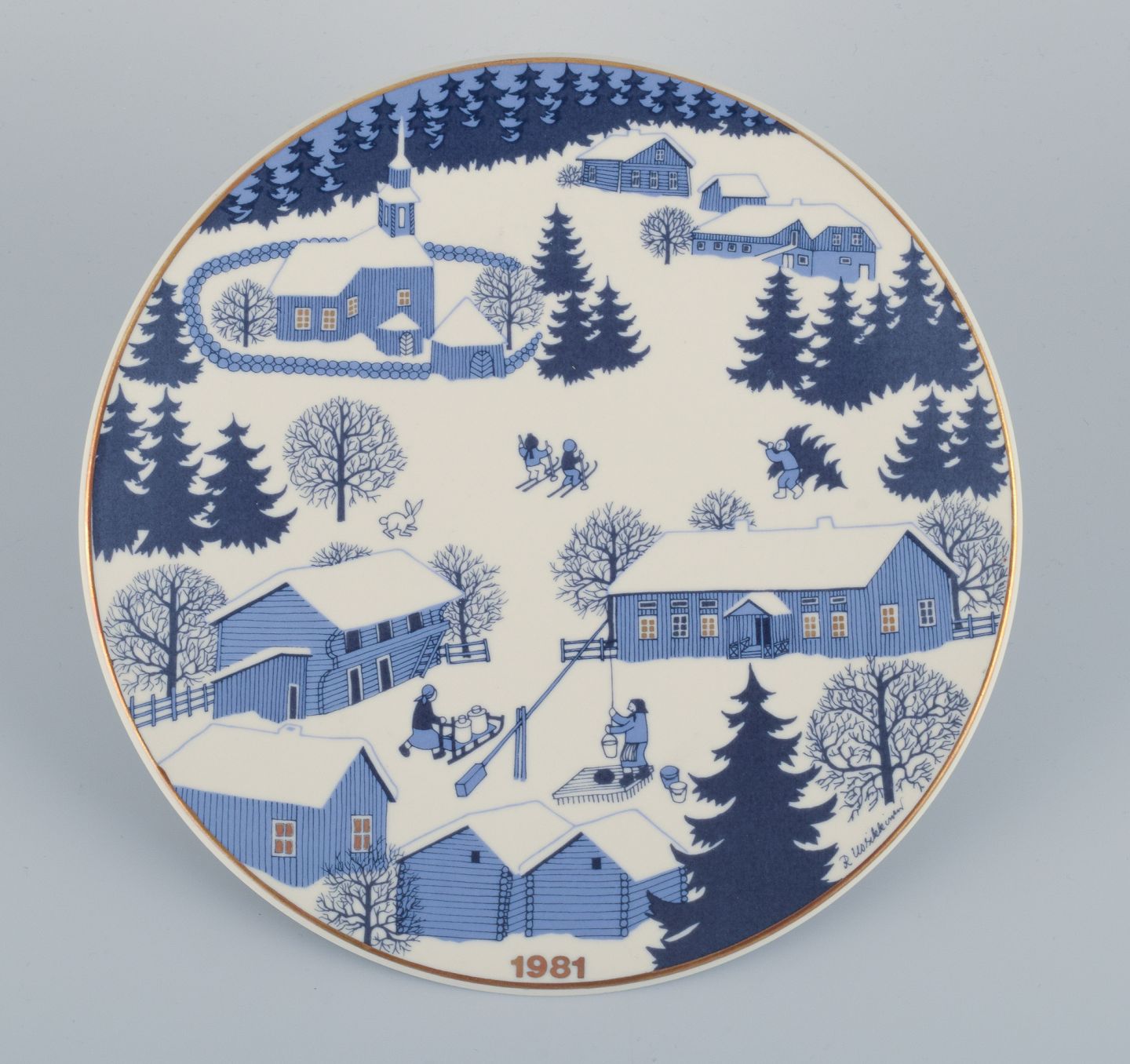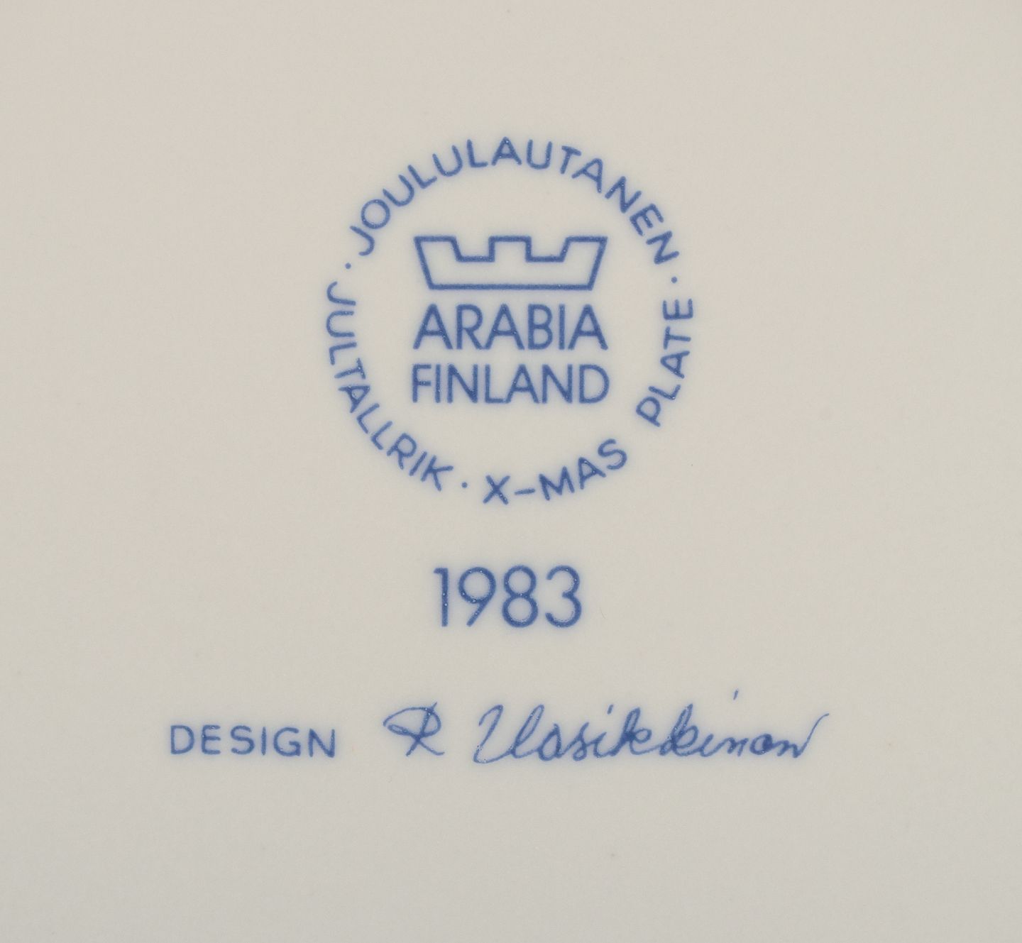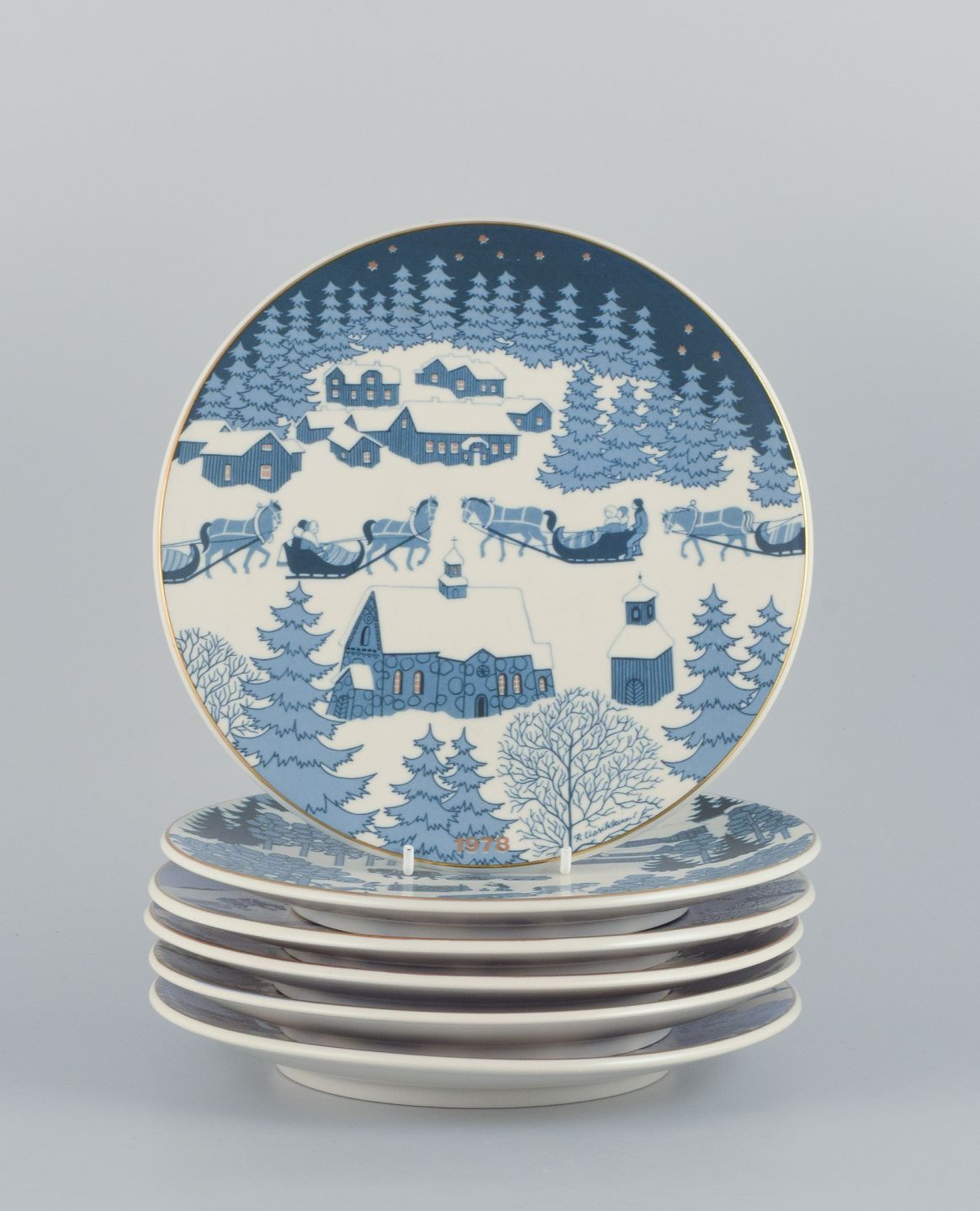 Raija Uosikkinon for Arabia, Finland, et set på seks juleplatter i porcelæn. Finske julelandskaber.