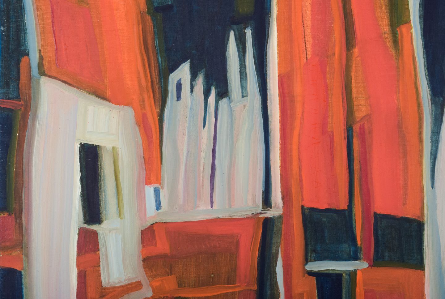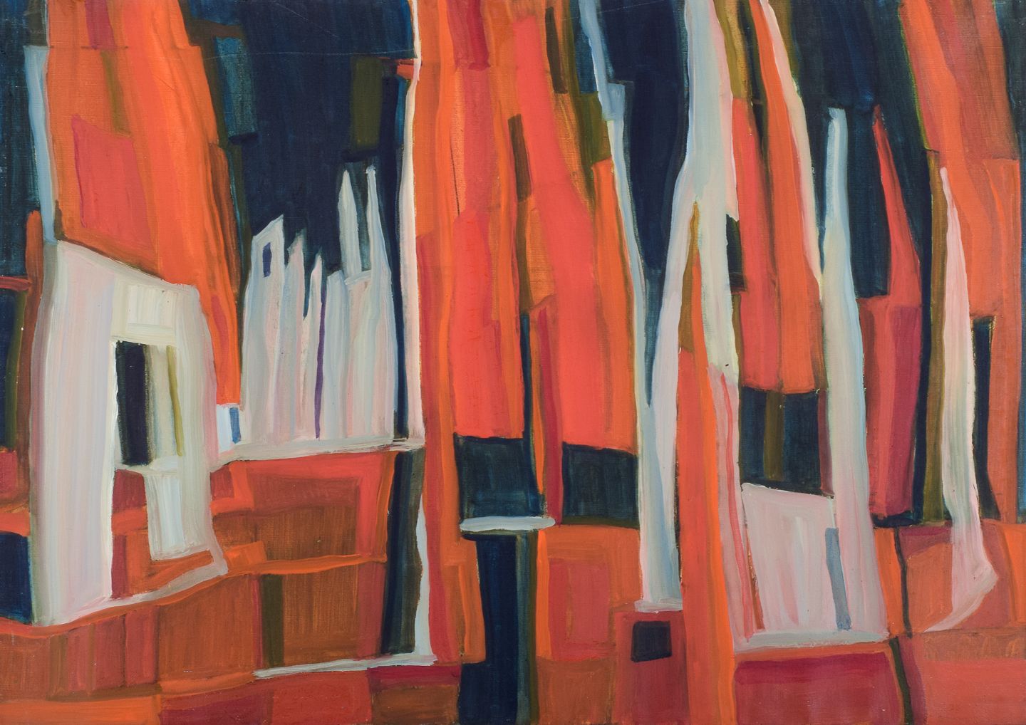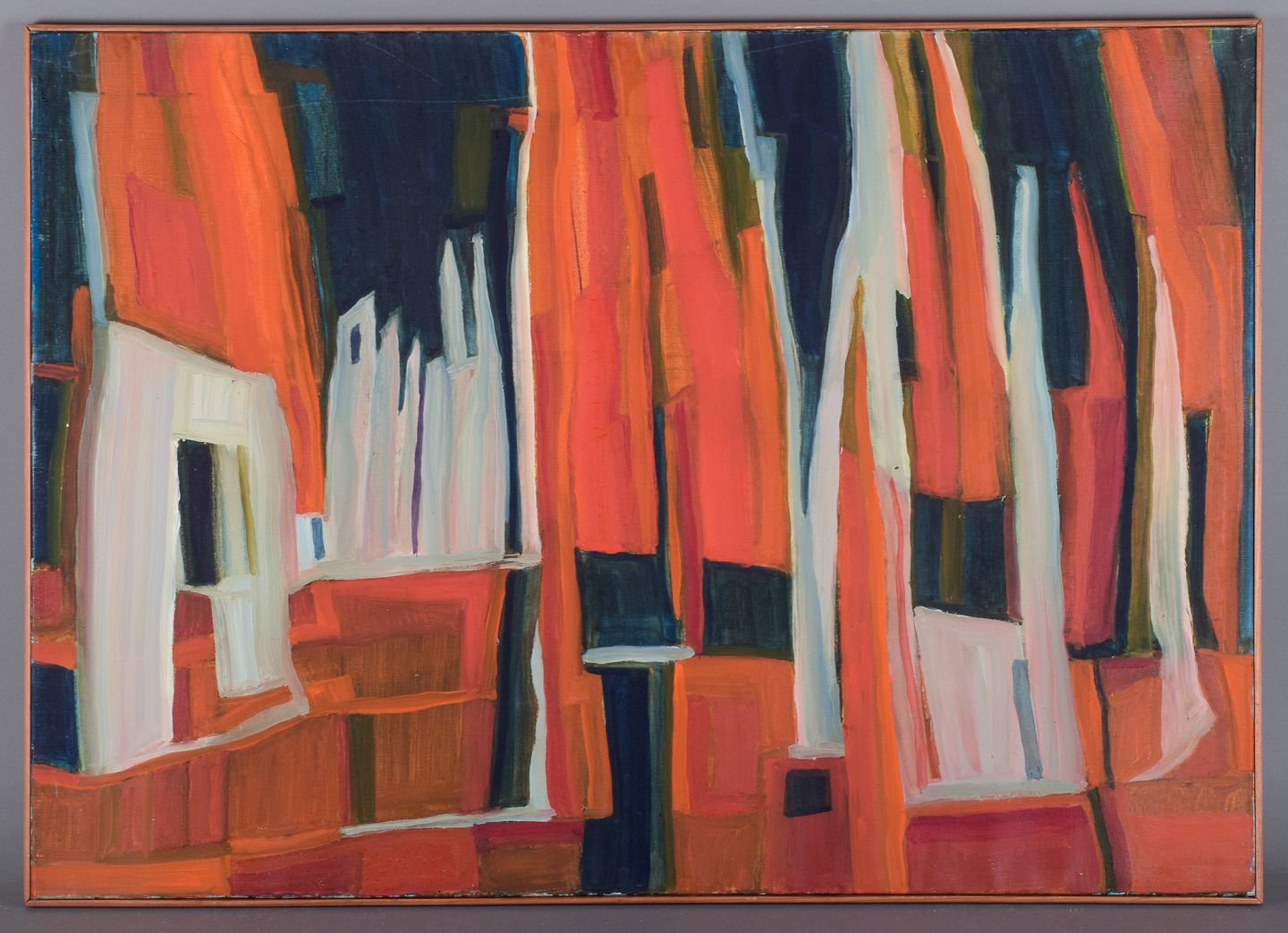 Olie på lærred. Abstrakt komposition. Koloristisk palette.