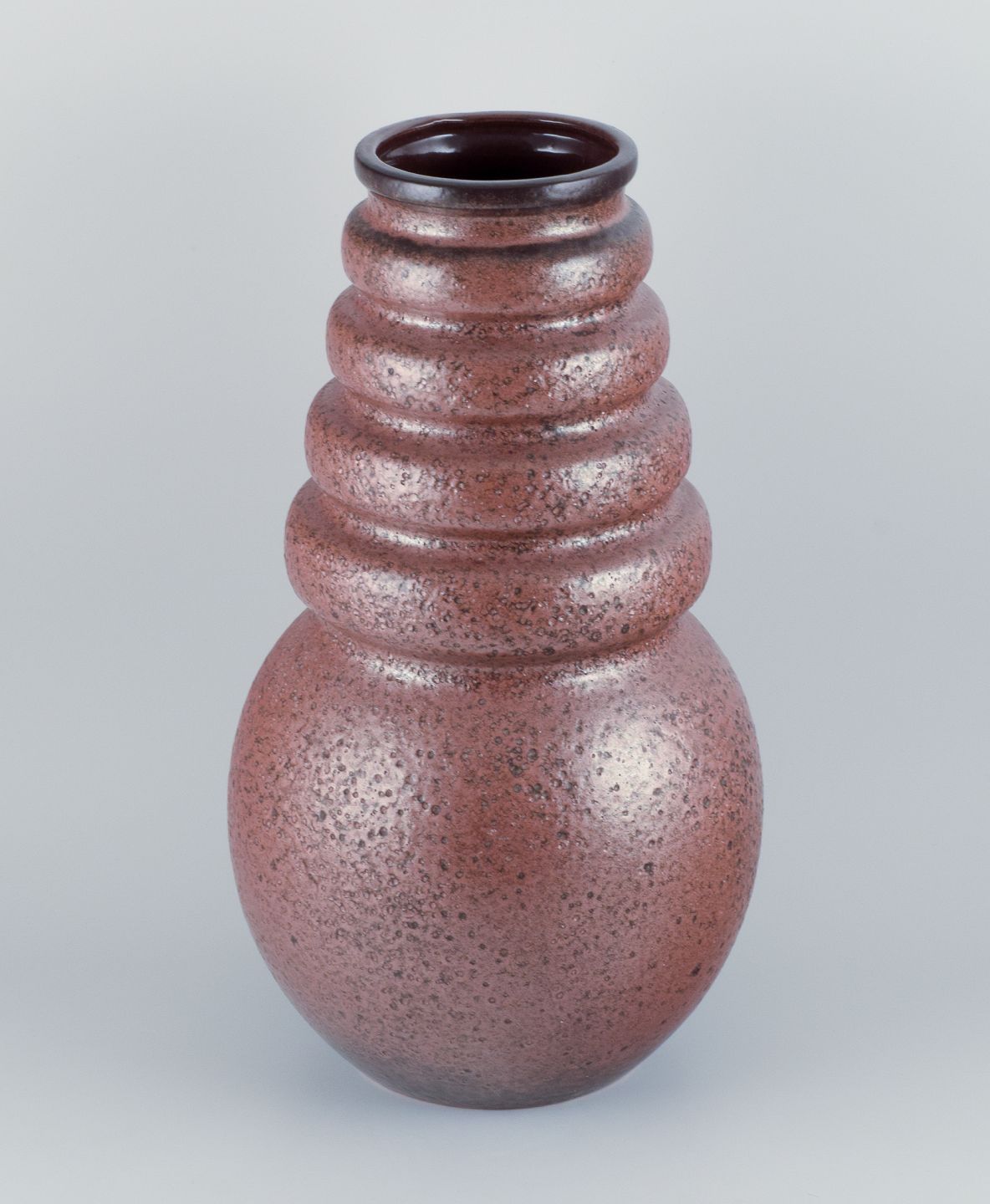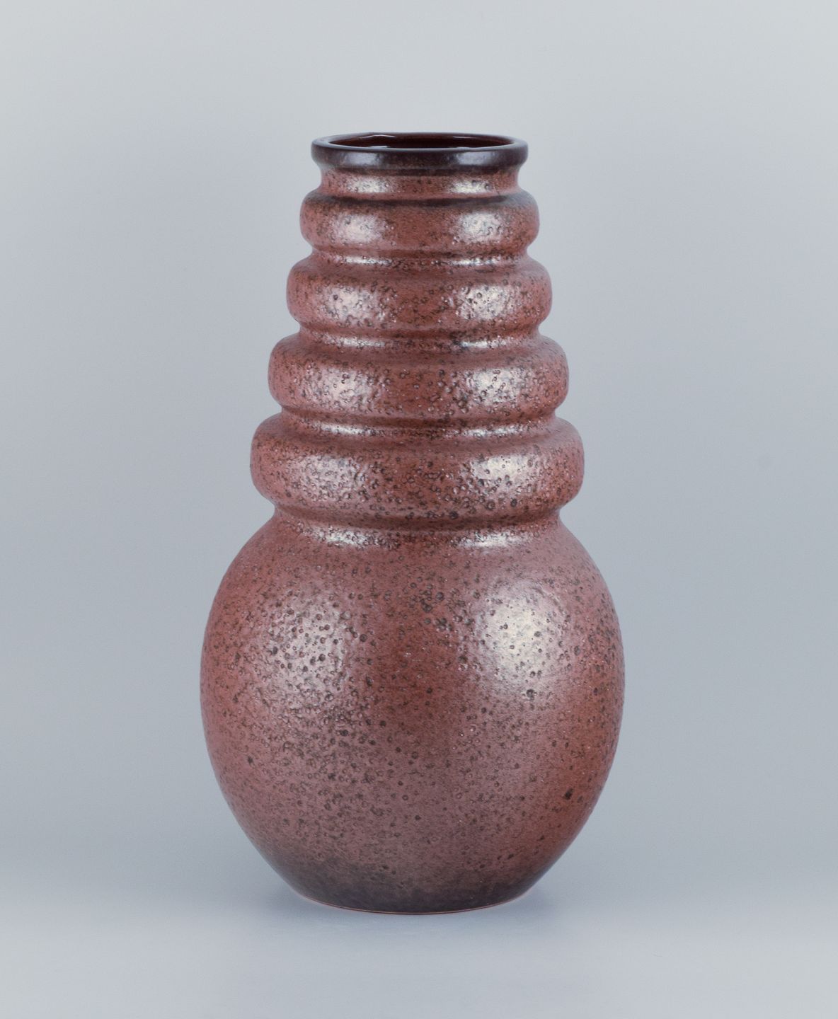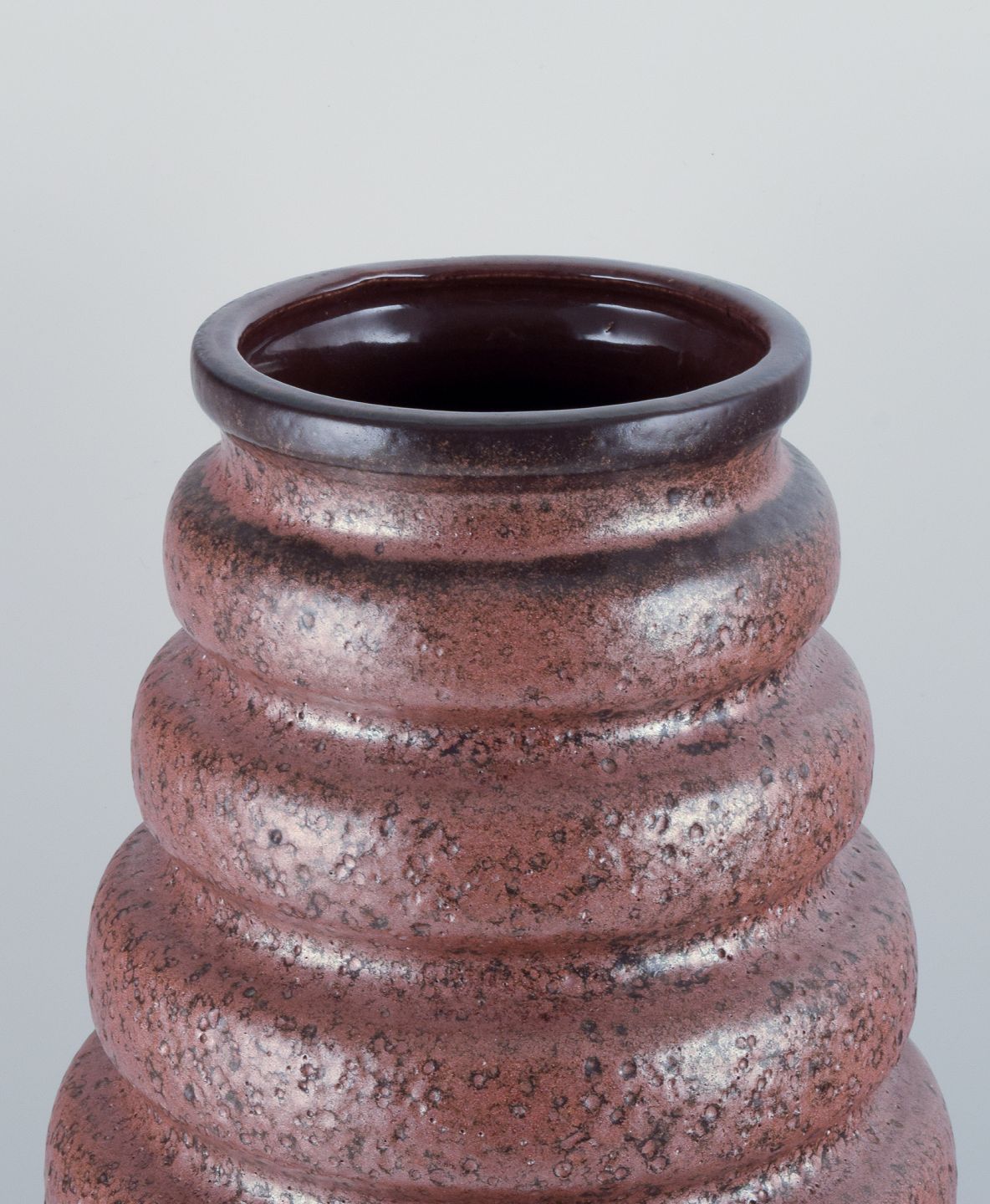 West Germany, gulvvase i keramik med glasur i brune nuancer. Retrodesign. Tung vase i høj kvalitet. Håndlavet. 1970’erne. Perfekt stand. Stemplet. Mål: B 27 cm. x H 51,0 cm.