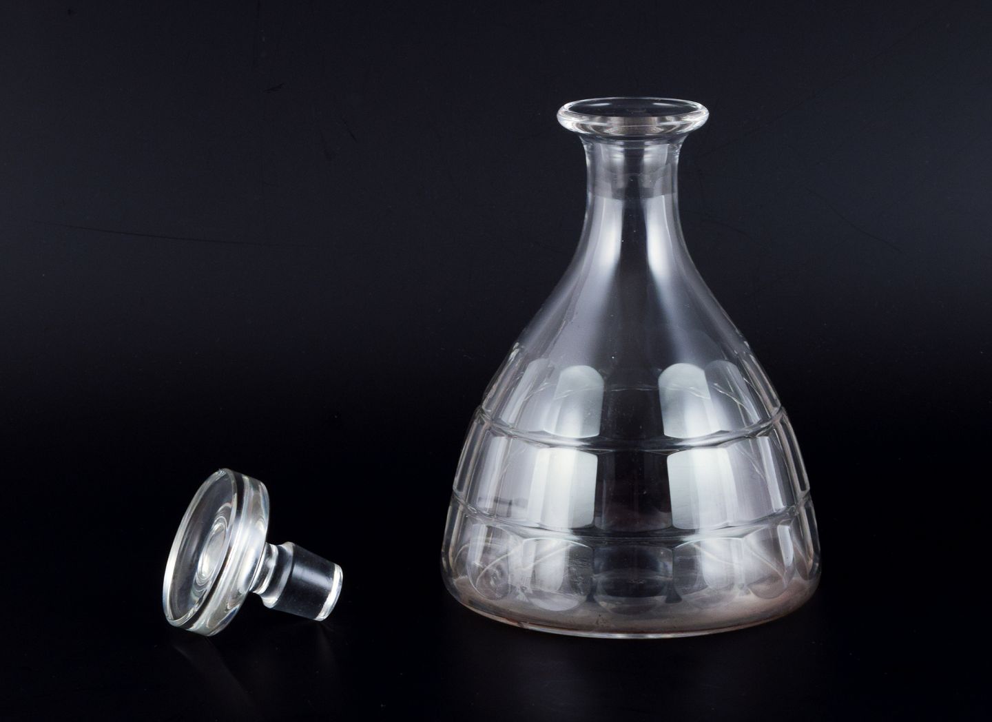 Baccarat, Frankrig, ”Charmes” Art Deco vinkaraffel i klart krystalglas. Facetslebet. 1930’erne. Perfekt stand. Mål: H 18,5 cm. med prop x D 12,5 cm.