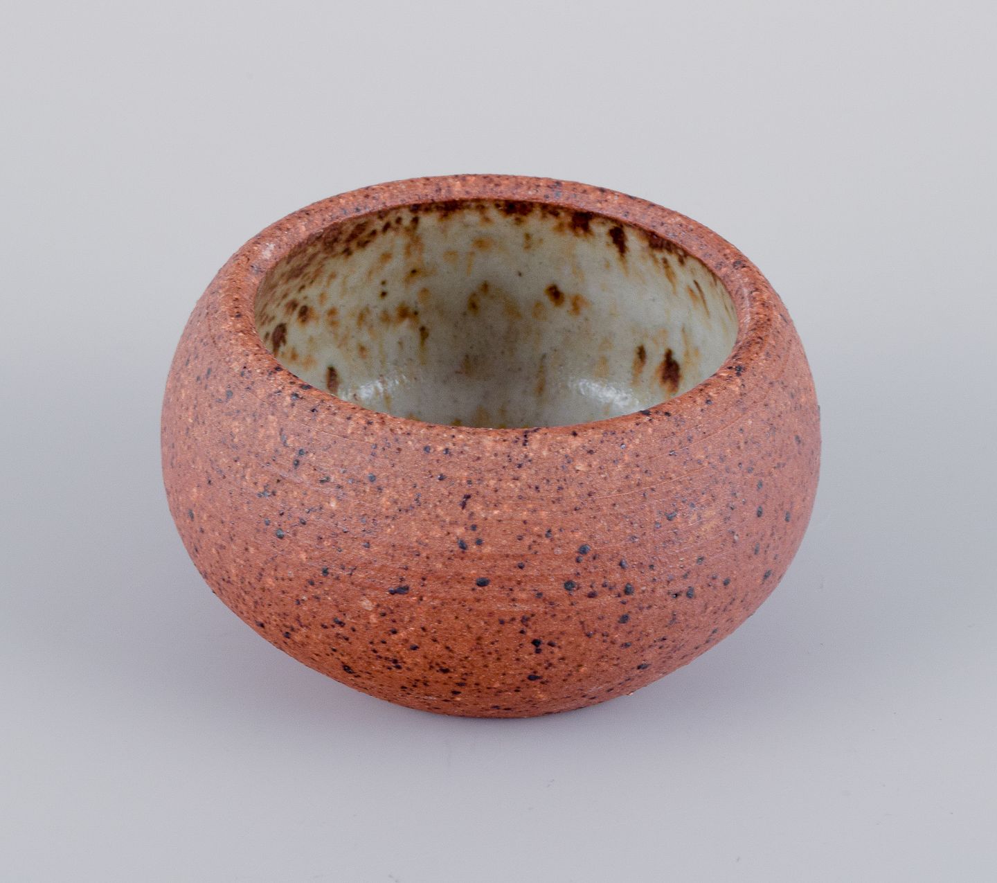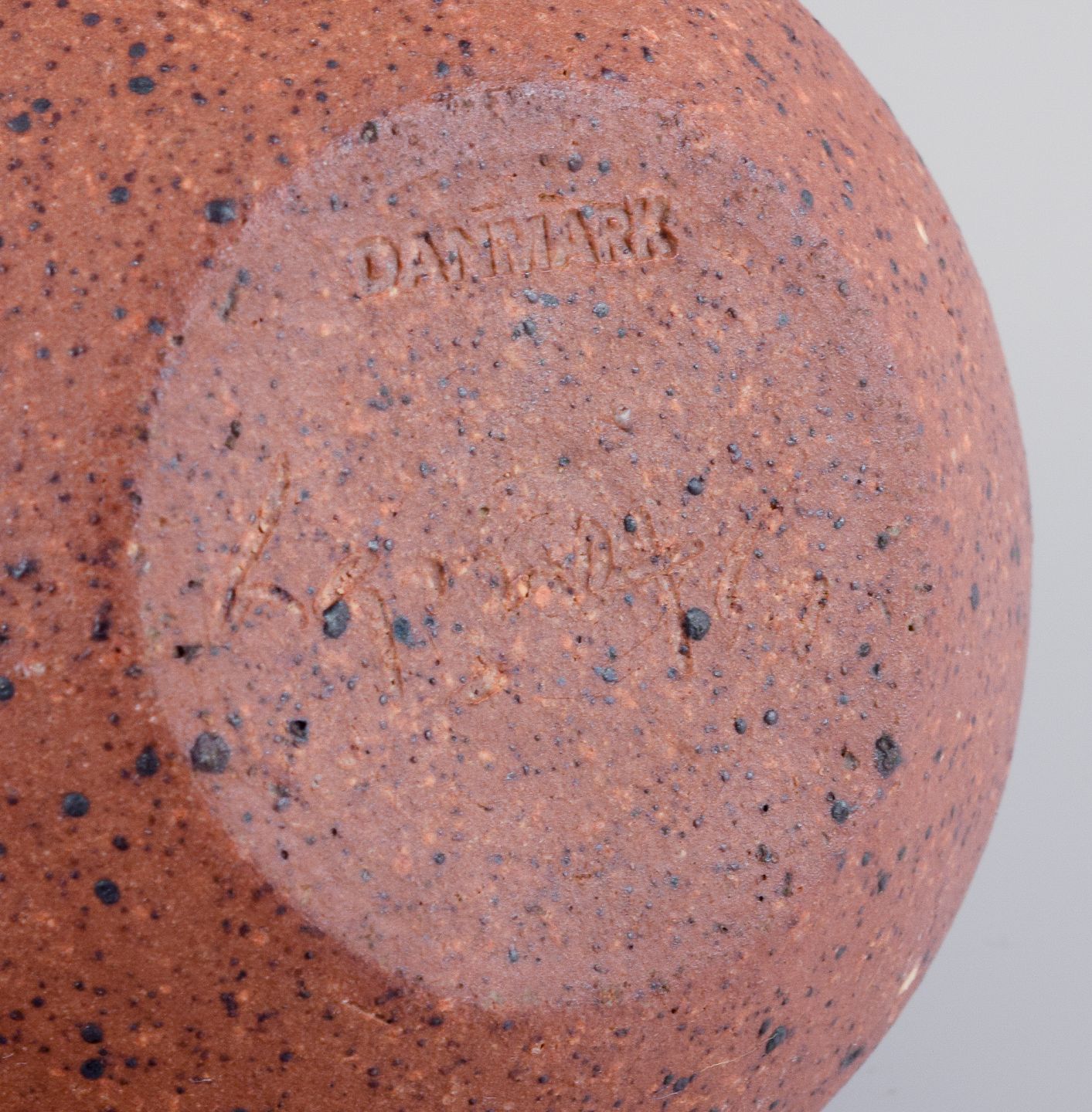 Mogens Nielsen, Nysted / Stouby Keramik og andre. Fire dele håndlavet keramik i brune nuancer. 1960/70’erne. Perfekt stand. Delvist signeret. Største: H 4,5 cm. x D 10,0 cm.