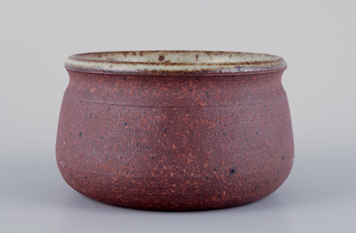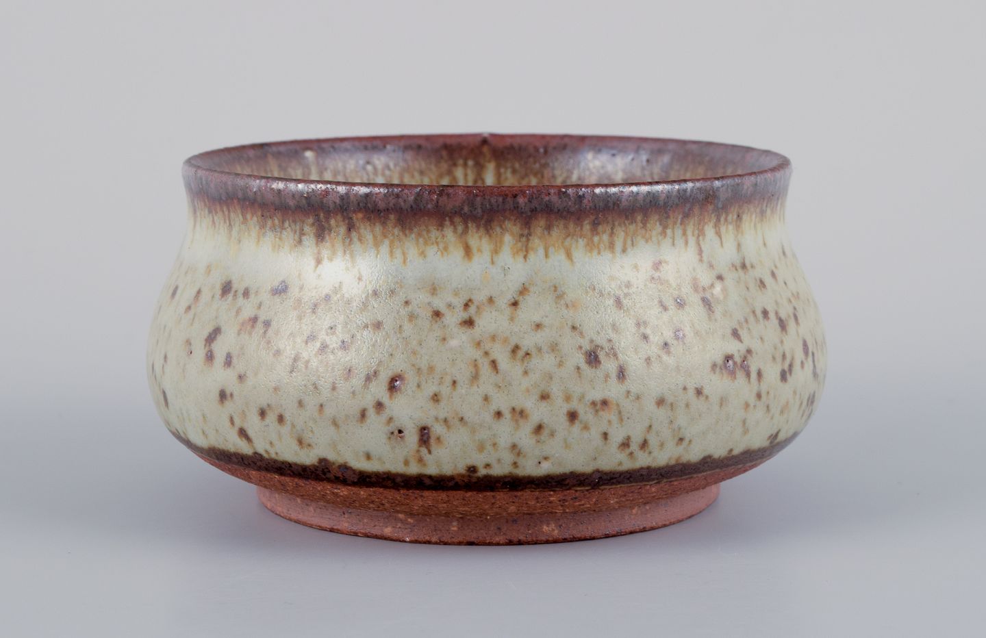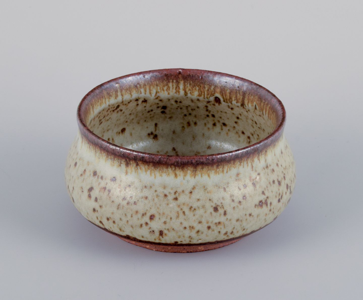 Stouby Keramik, Denmark. Two pieces of handmade ceramic in light and brown shades. From the 1960s/70s. In perfect condition. Signed. Tallest measures: H 6.5 cm x D 10.6 cm.