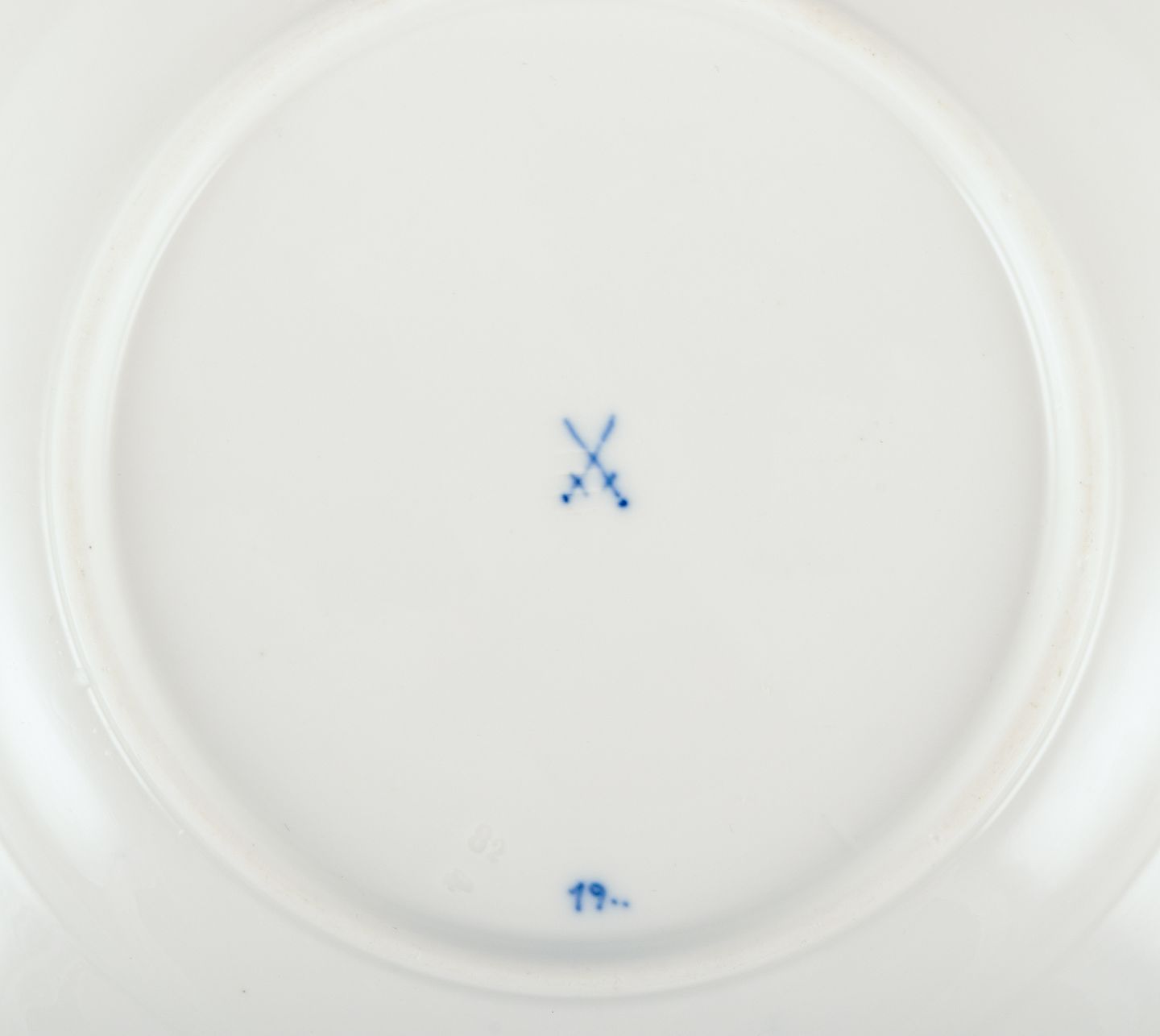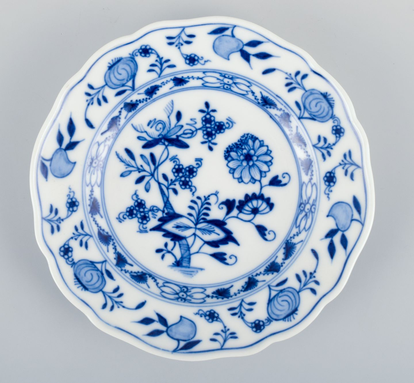 Meissen, Tyskland, tre løgmønstret tallerkner i forskellige størrelser. Håndmalet. Ca. 1930. Stemplet. Forskellige sorteringer. I flot stand. Mål: fra D 15,0 cm. - D 24,4. cm.