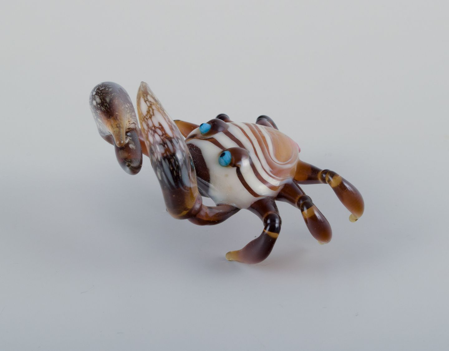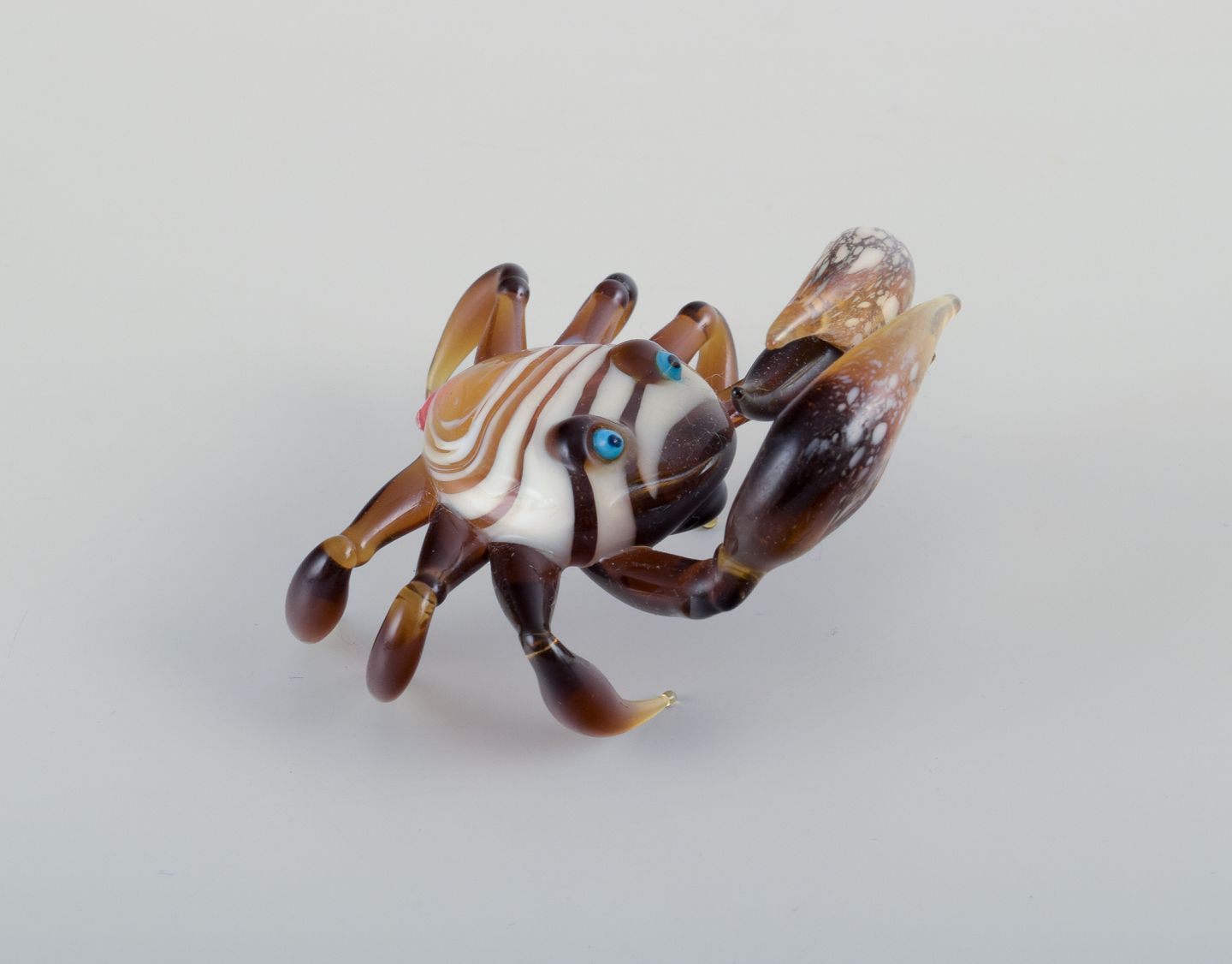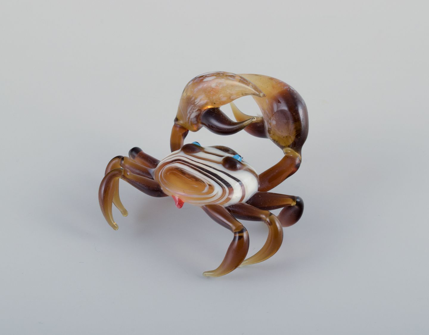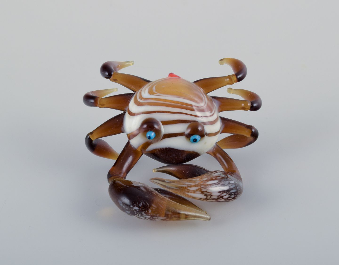Murano, Italien. En samling på tre miniature glasfigurer bestående af to sæler og en krabbe i farvet kunstglas.