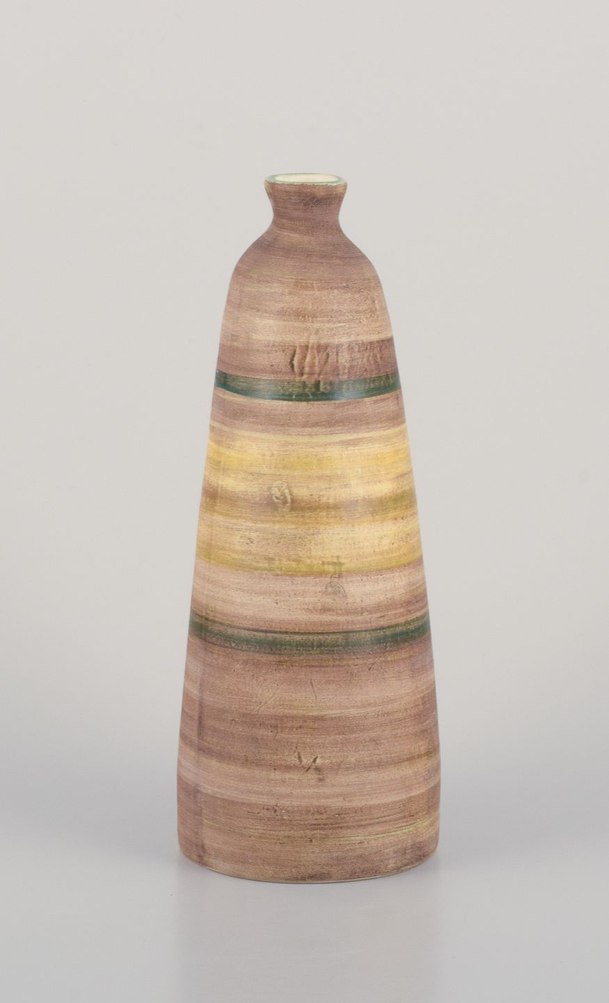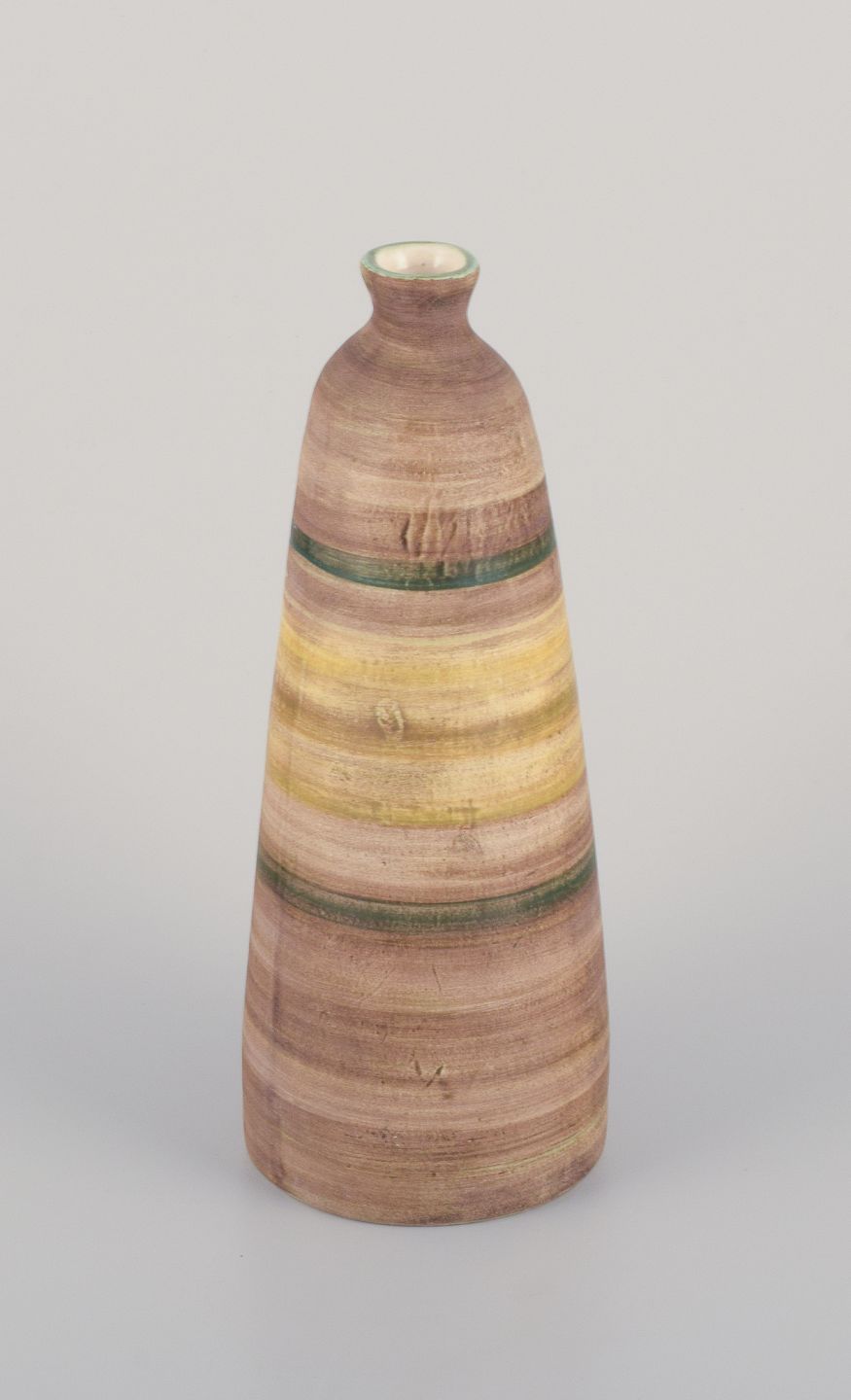Atelier Le Belier, Vallauris, France. Unique ceramic vase in polychrome glaze. Approximately from 1970. In perfect condition. Signed. Dimensions: H 26.5 cm x D 10.0 cm.