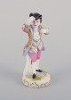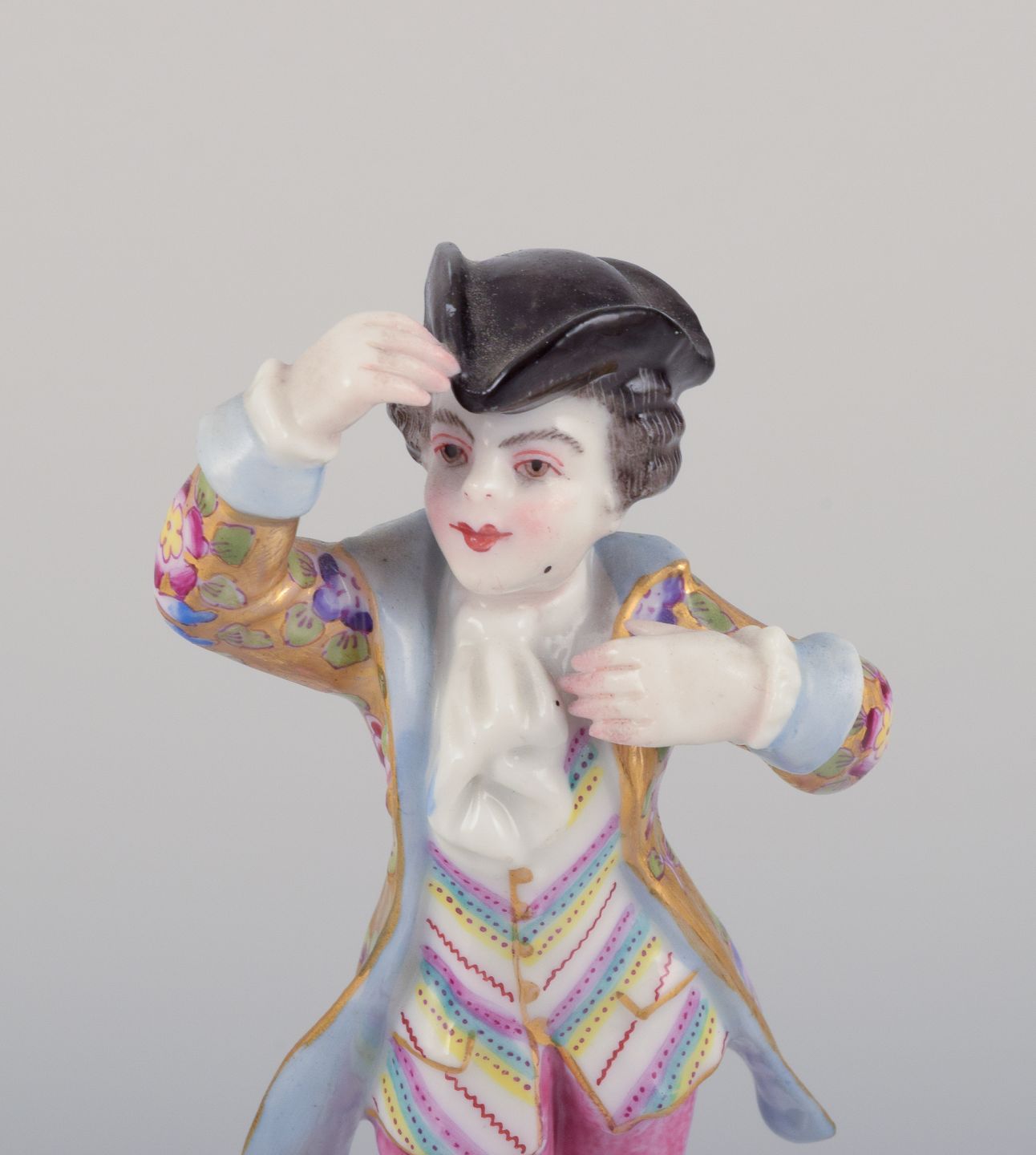 Meissen, Germany, porcelain figurine of a young man in elegant attire. Hand-painted in polychrome colors.