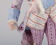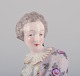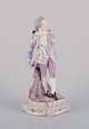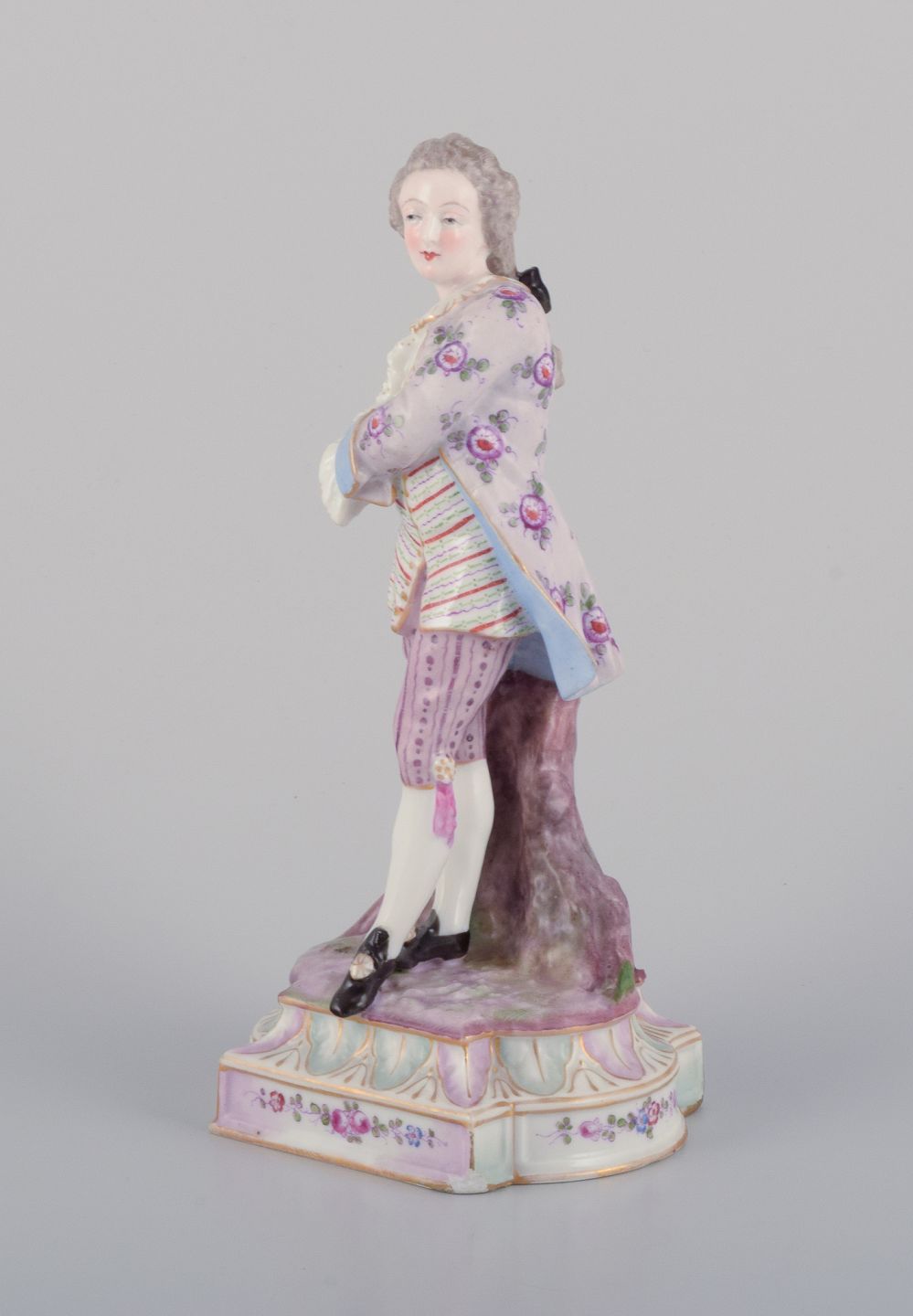 Antik tysk porcelænsfigur. Stor figur af ung mand i fine klæder. Håndmalet i polykrome farver.