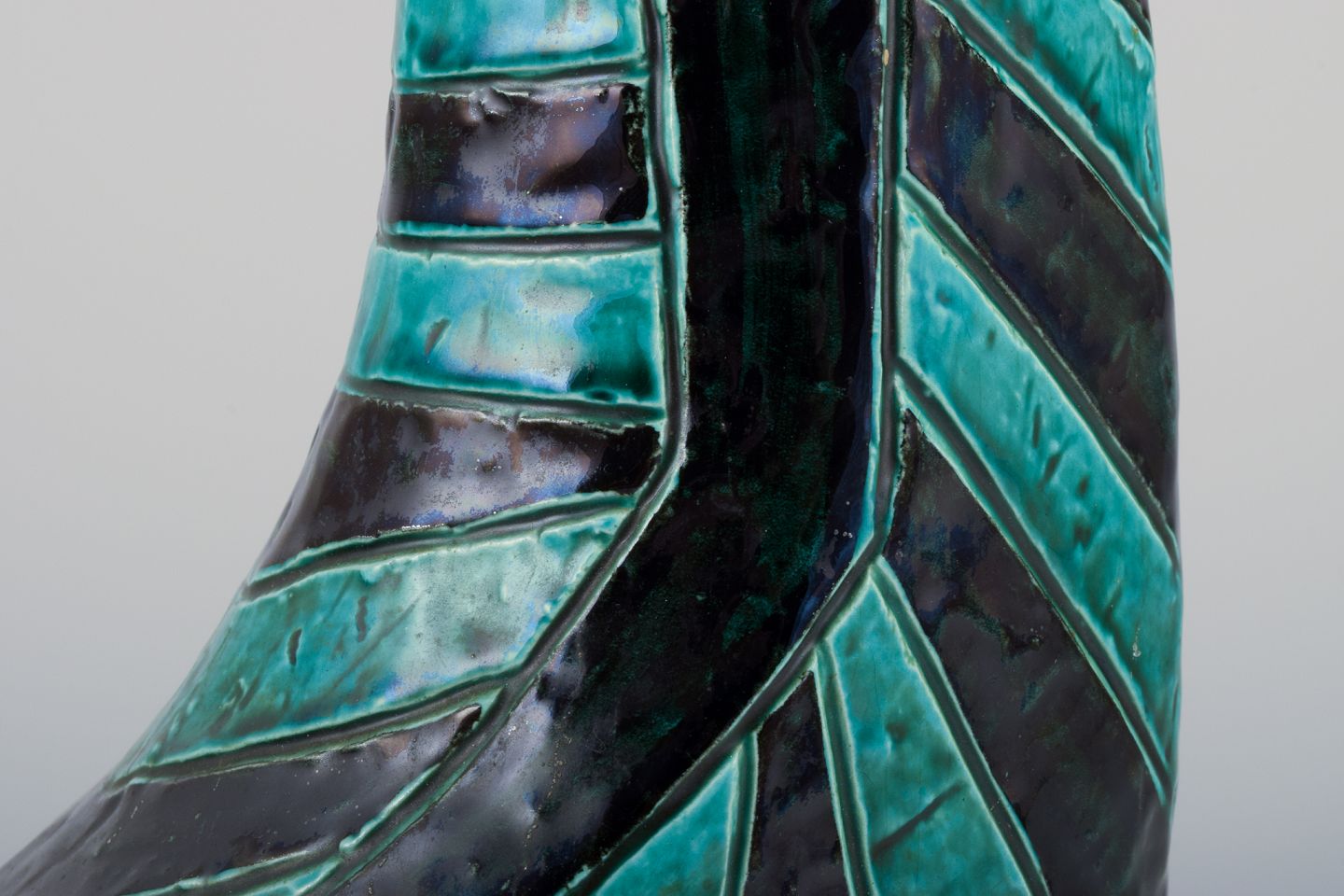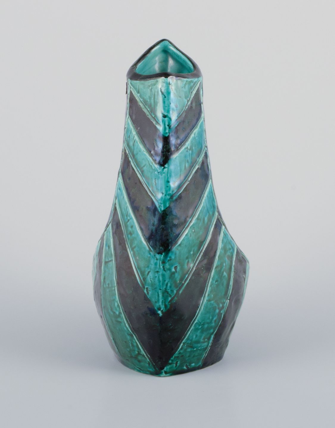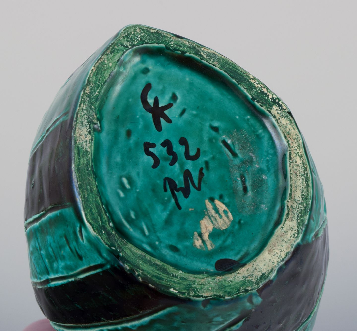 Christer, Mariestad, Sverige. Modernistisk keramikvase med glasur i grønne og sorte toner. Ca. 1960. Signeret. Perfekt stand. Mål: H 21,5 cm. x D 13,0 cm.