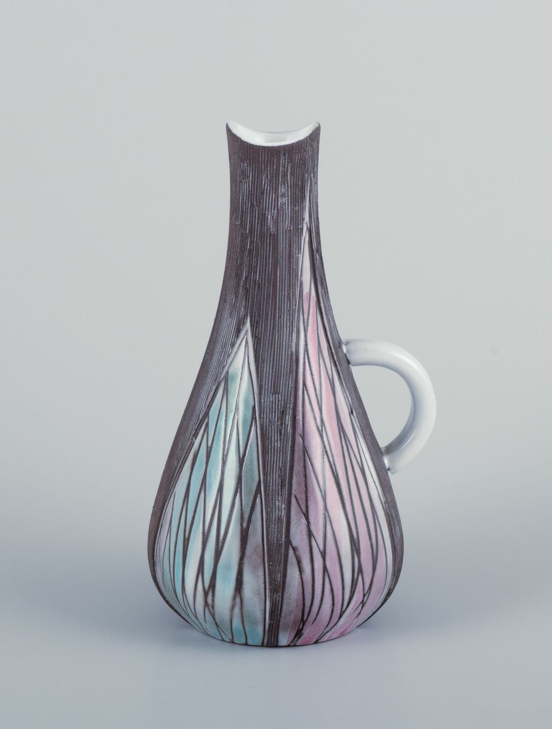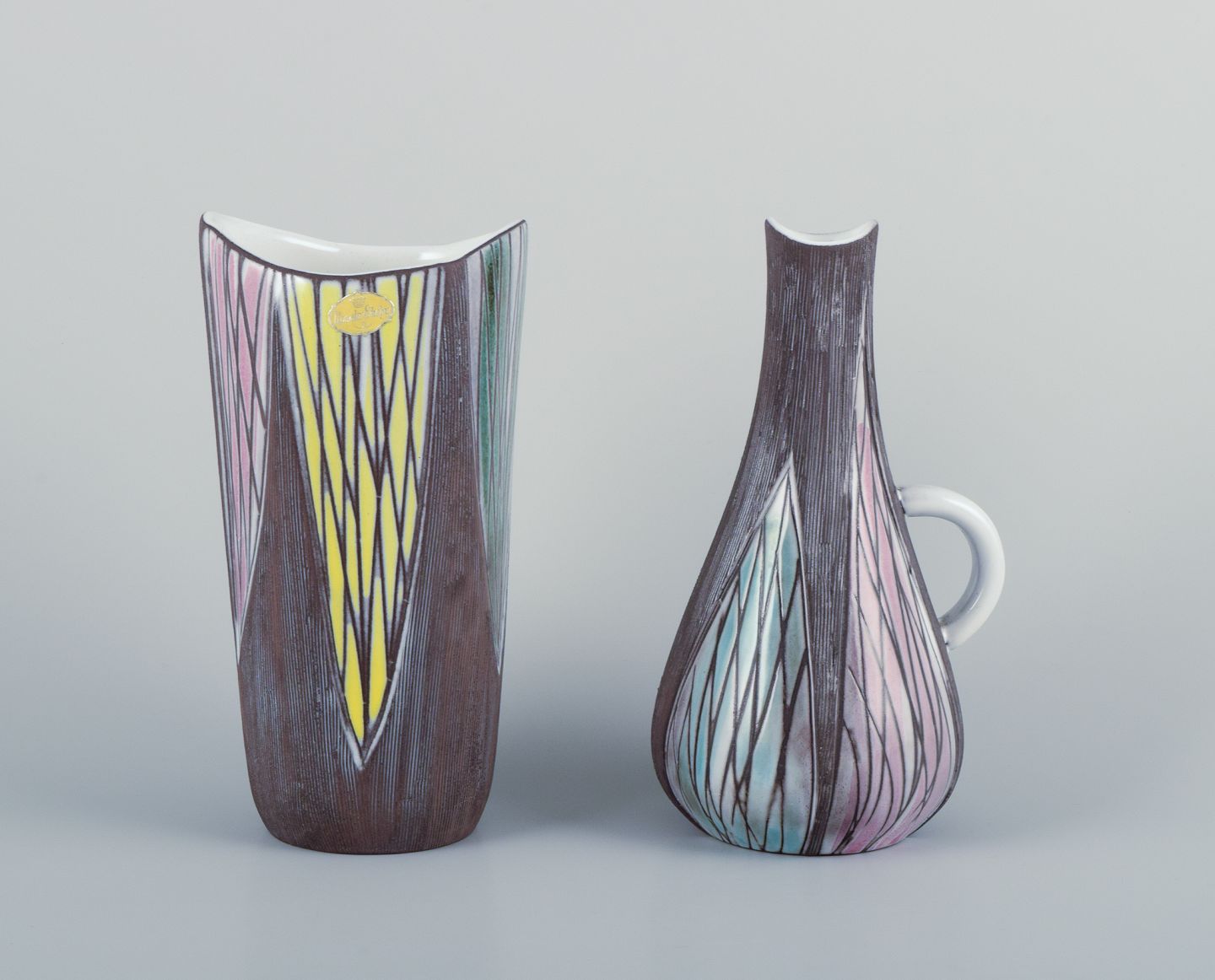 Keramikvase og kande i modernistisk stil med abstrakte motiver.