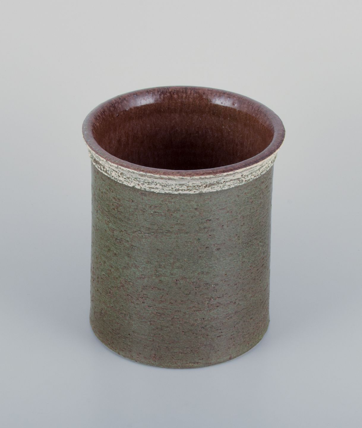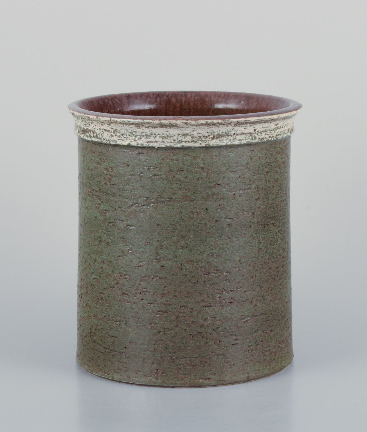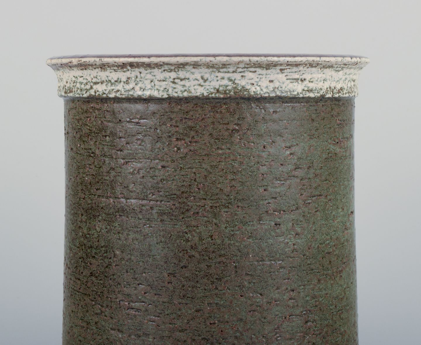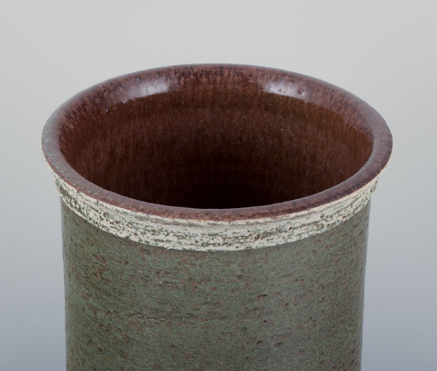 Studiohand keramikvase med glasur i grønlige nuancer.