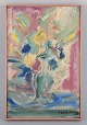 Olie på lærred. Stilleben med blomst i en vase i abstrakt stil.