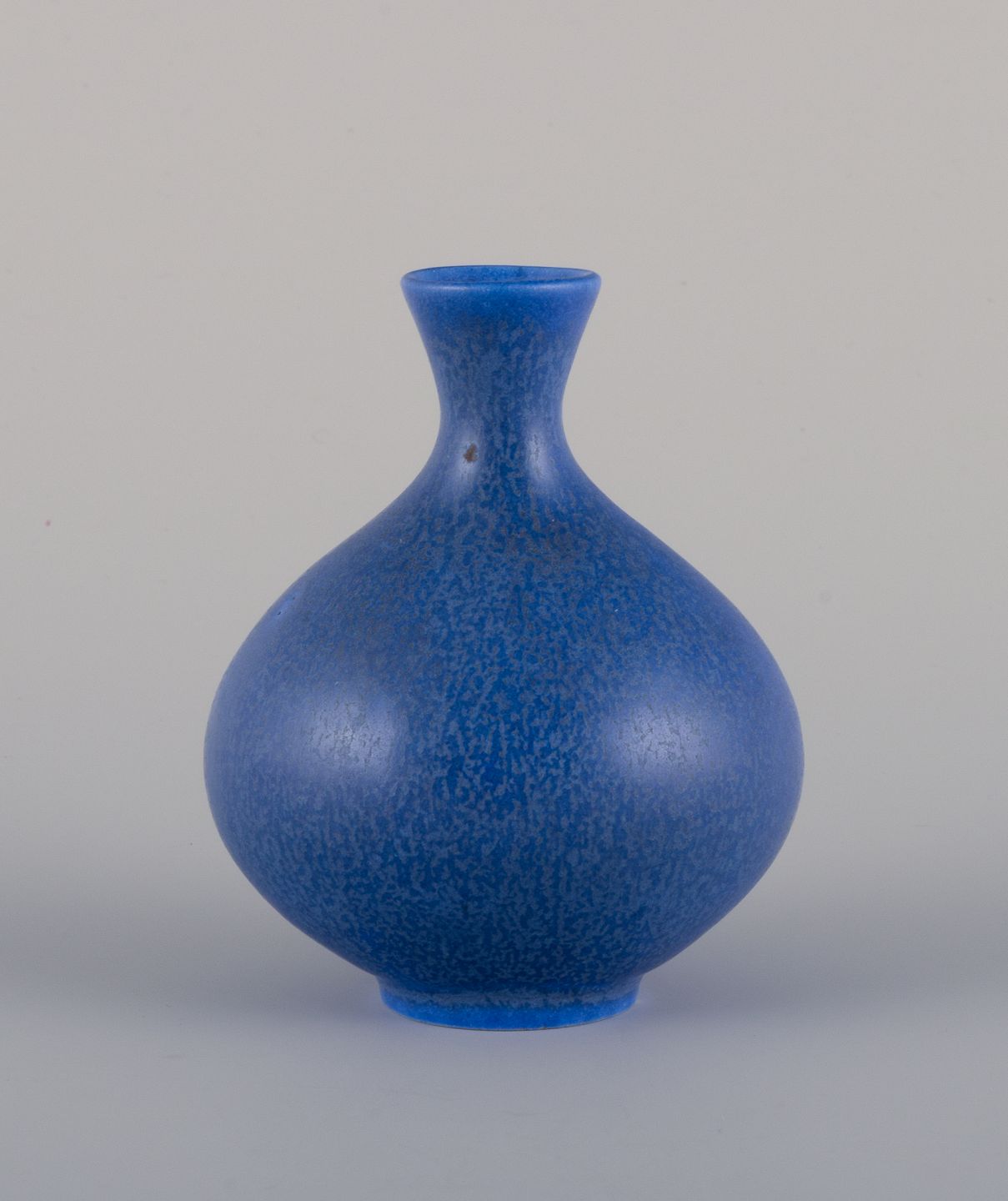 Berndt Friberg (1899-1981) for Gustavsberg, Sverige. Keramikvase i blå glasur. Buttet form. 1960/70’erne. Etiket. I god stand med ubetydeligt skår i bunden. Se foto. Mål: H 8,0 cm. x D 6,0 cm.