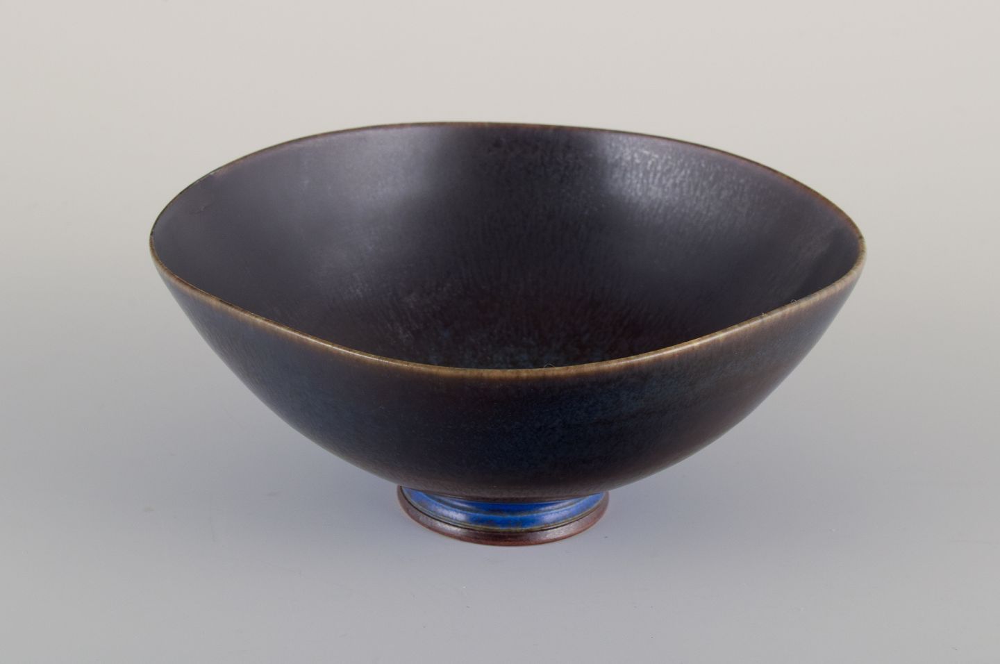 Berndt Friberg (1899-1981) for Gustavsberg, Sverige. Unika Studiohand keramikskål med glasur i blågrønne toner.