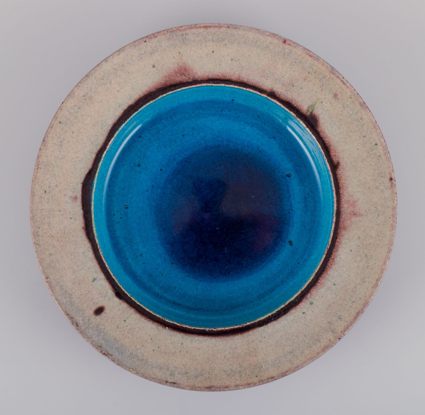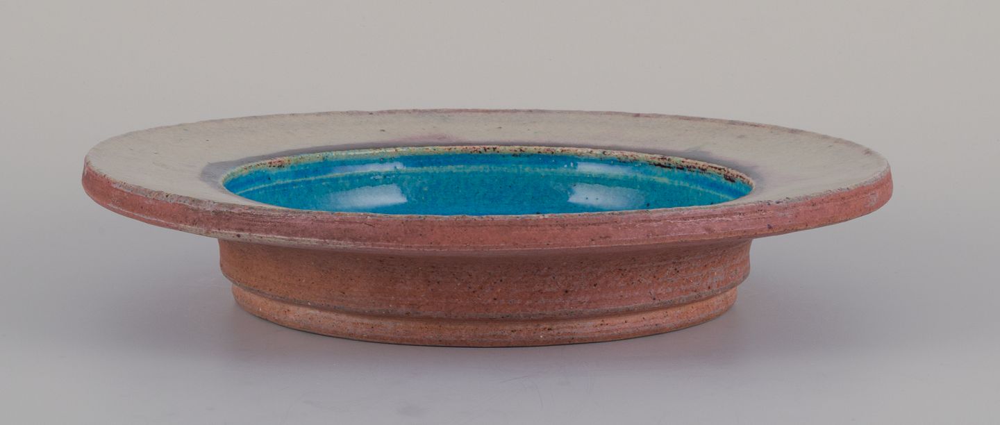 Nils Joakim Kähler (1906-1979) for Kähler, Danmark. Rund keramikskål i modernistisk stil. Turkis og cremefarvet glasur. Ca. 1960’erne. Stemplet. Perfekt stand. Mål: D 26,5 x H 4,7 cm.