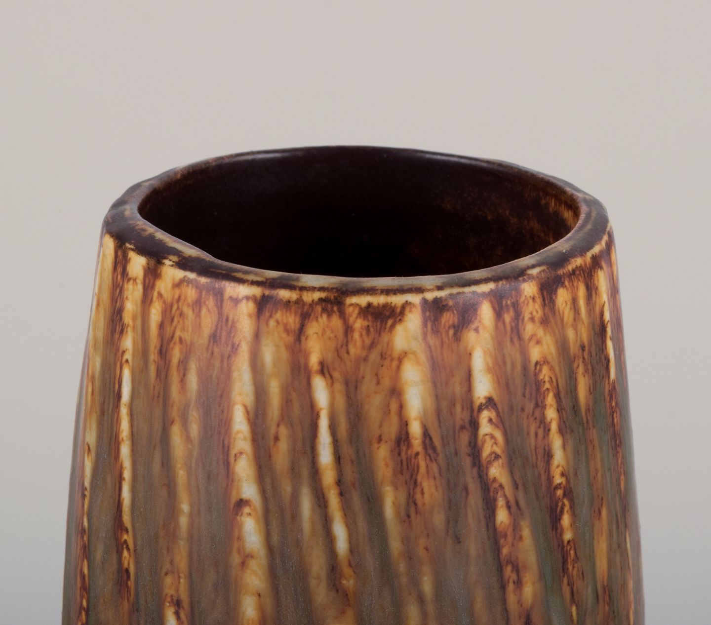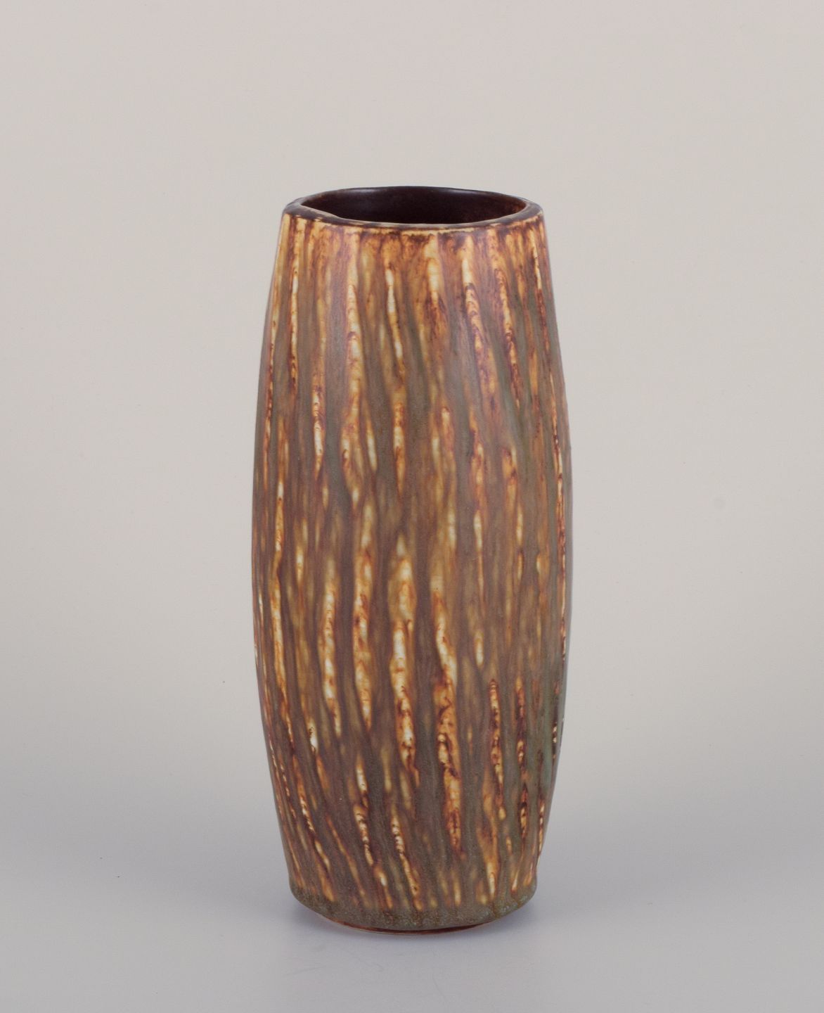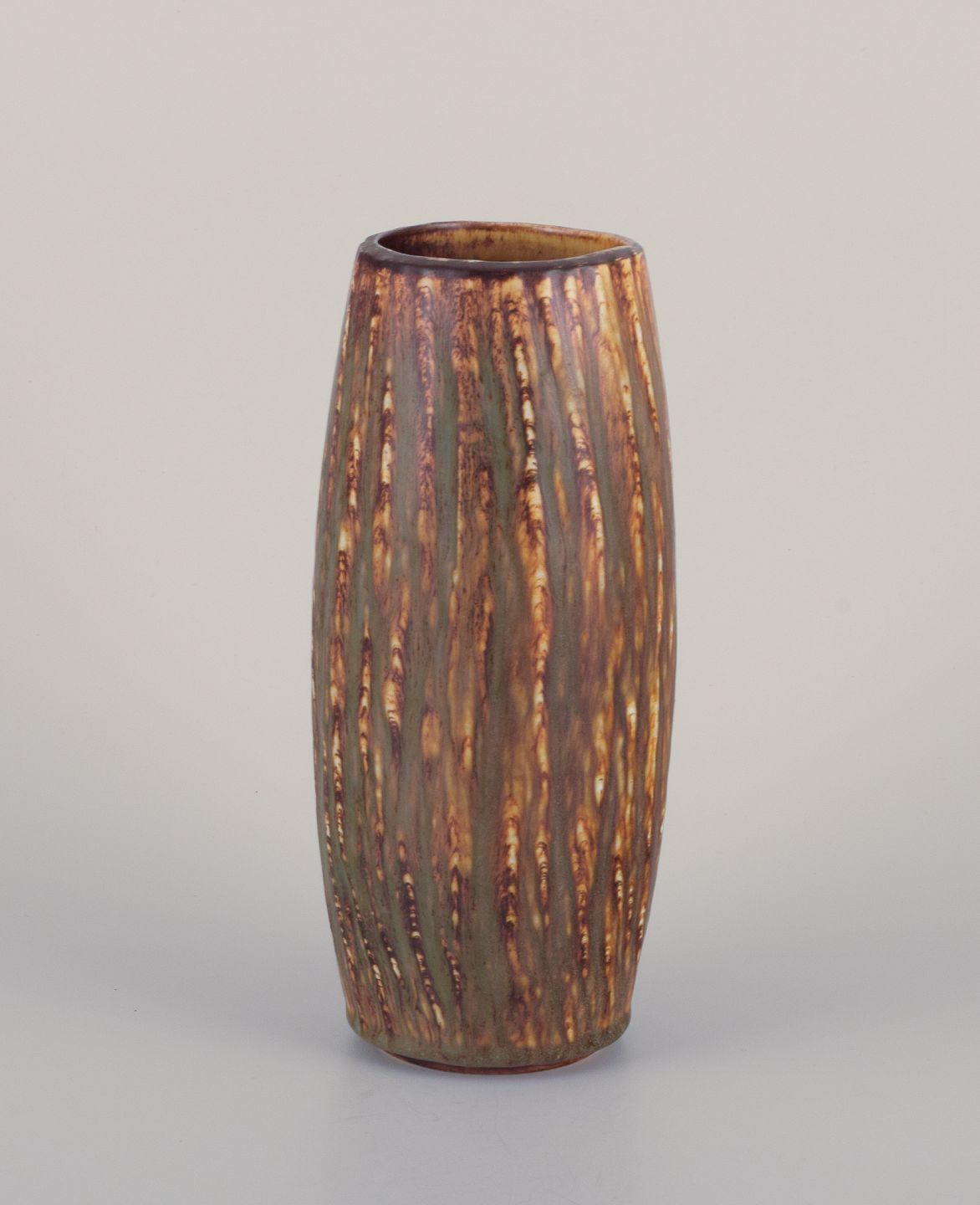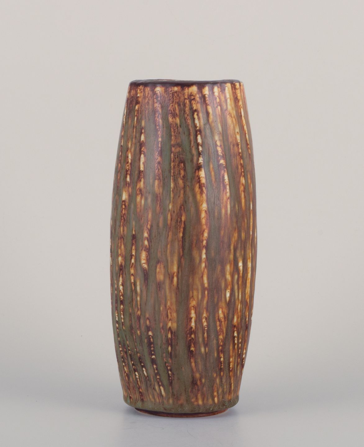 Gunnar Nylund (1904-1997) for Rörstrand, keramikvase med birketræsglasur. Midt 1900-tallet. Stemplet. Første sortering. Perfekt stand. Mål: H 22,5 cm. x D 9,5 cm.