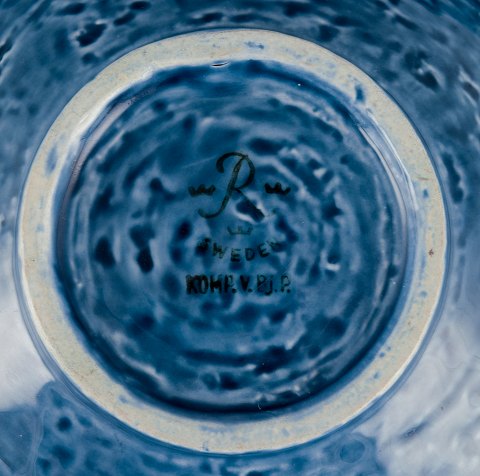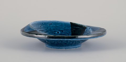 Vilhelm Bjerke Petersen (1909-1957) for Rörstrand, Sweden. Ceramic bowl in abstract style. Glaze in blue and green tones.