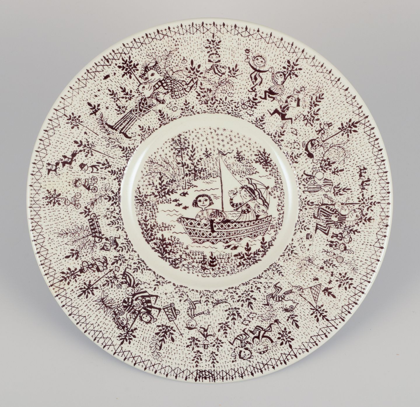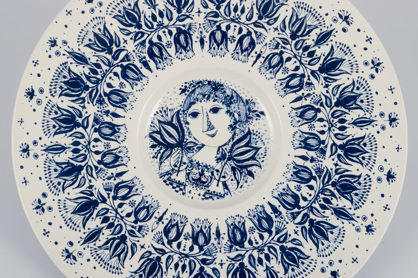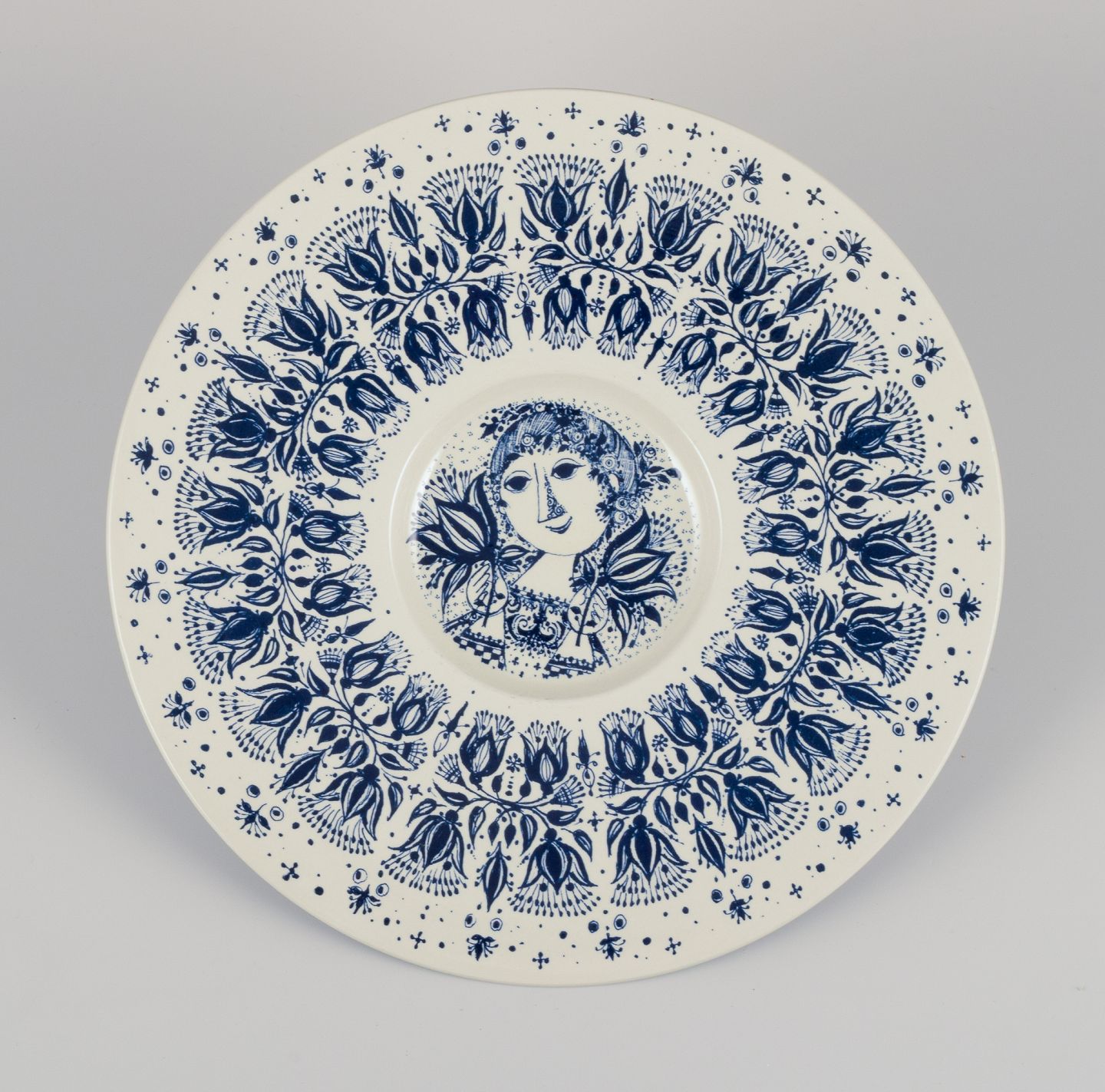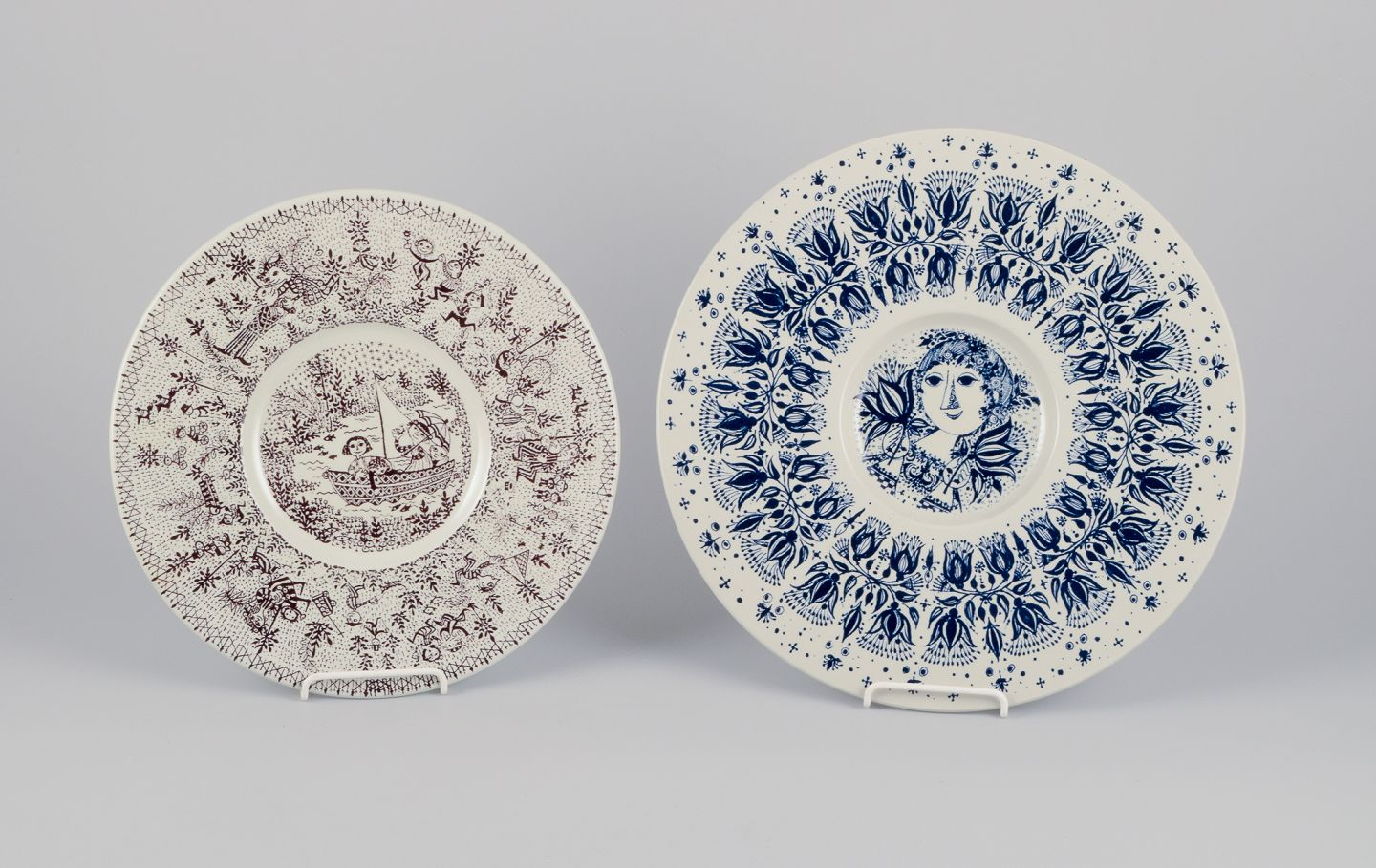Two large faience dishes with classic Wiinblad motifs in blue and brown.