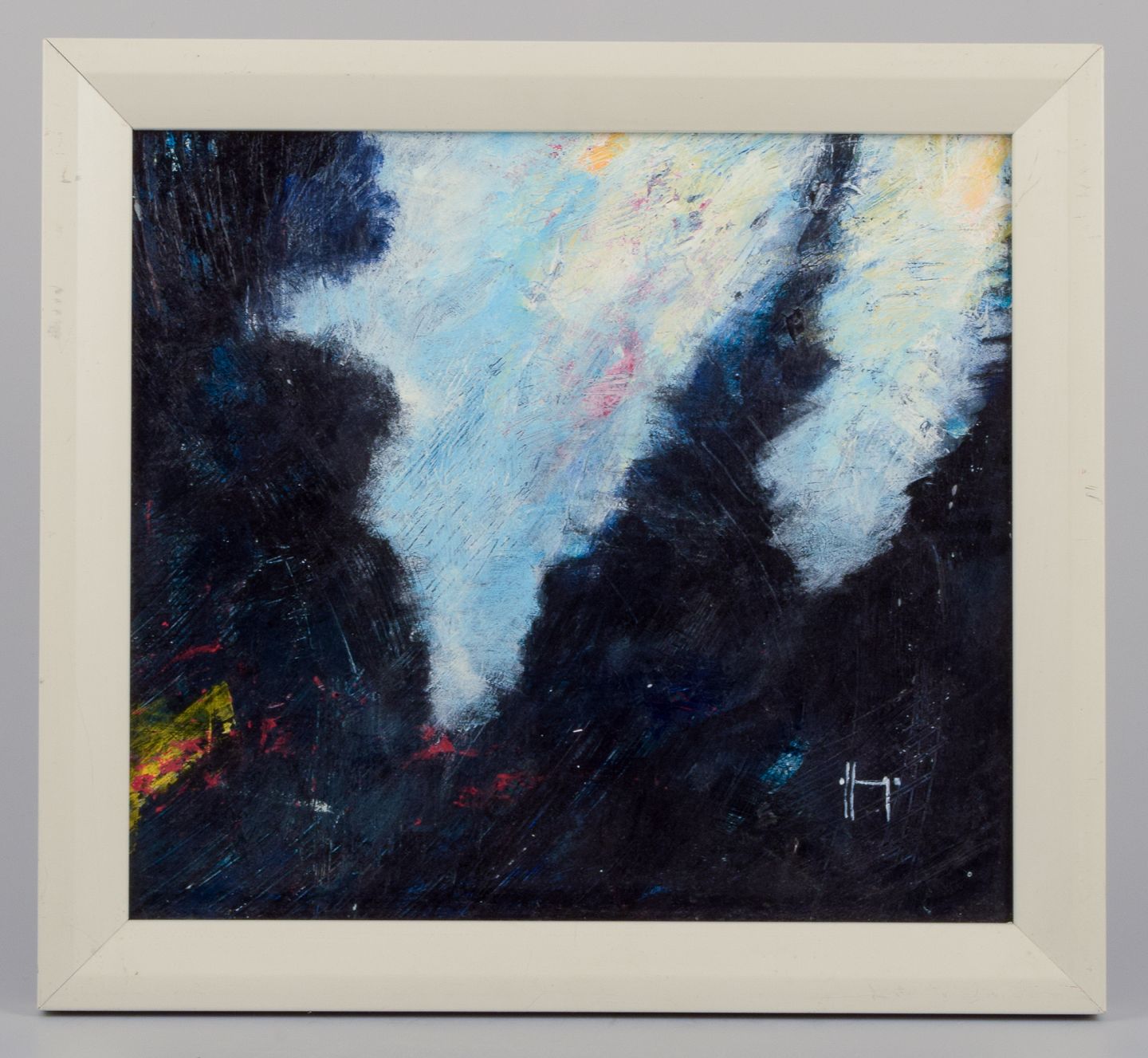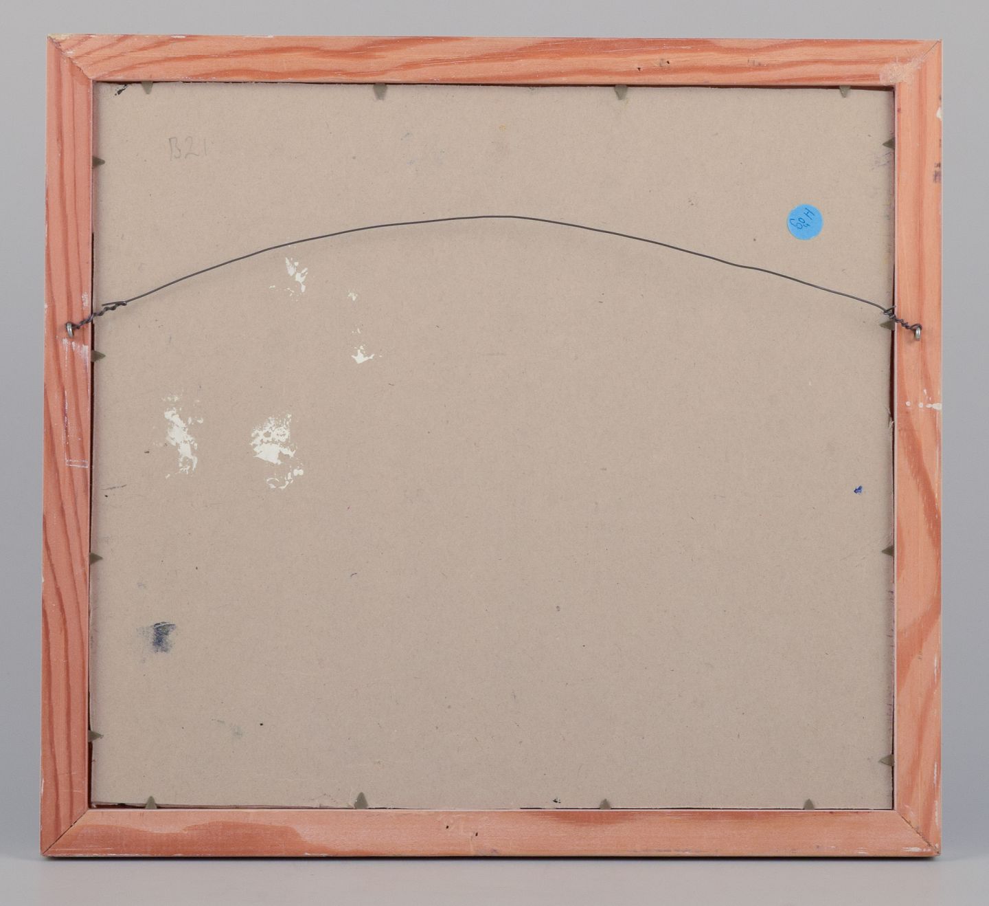 Svensk kunstner, olie på plade. Abstrakt komposition. Signeret. Perfekt stand. Mål: 30,3 cm. x 27,6 cm.