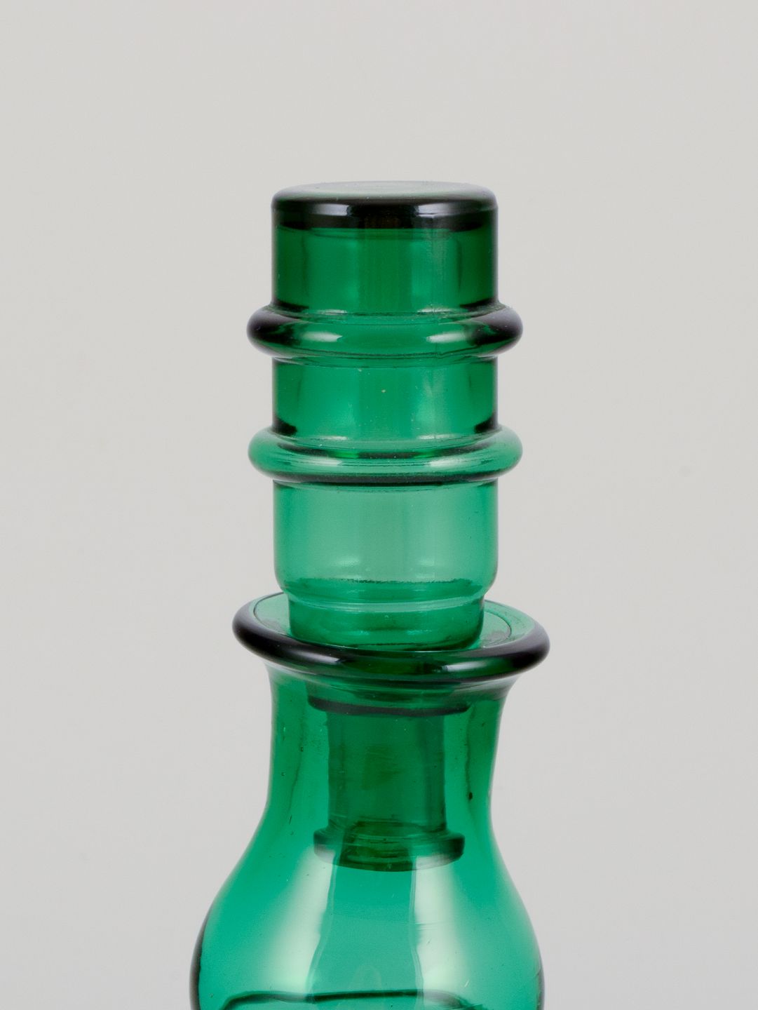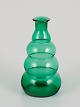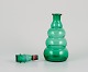 Et par karafler i grøn mundblæst kunstglas. Svensk glasværk. Art Deco-stil. Ca. 1930’erne. Perfekt stand. Mål: D 9,5 cm. x H 24,0 cm.