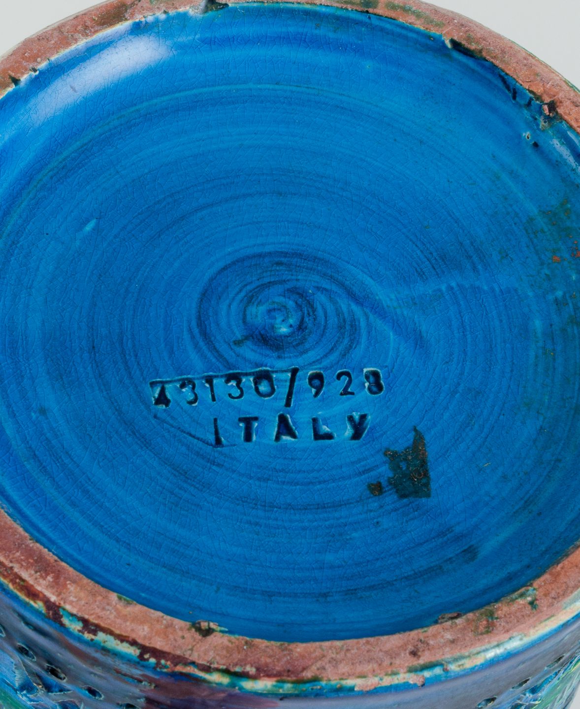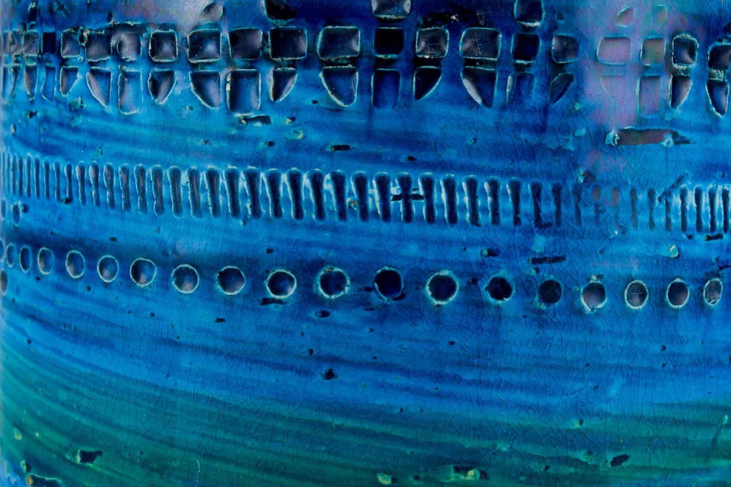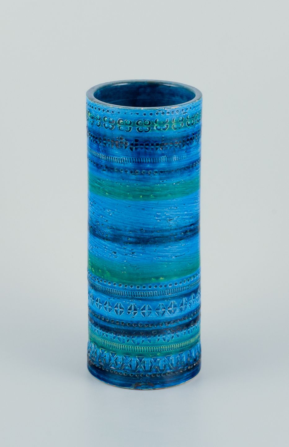 Aldo Londi (1911–2003) for Bitossi, Italien. Stor cylinderformet keramikvase. Glasur i grønne og blå nuancer. Geometrisk mønster.