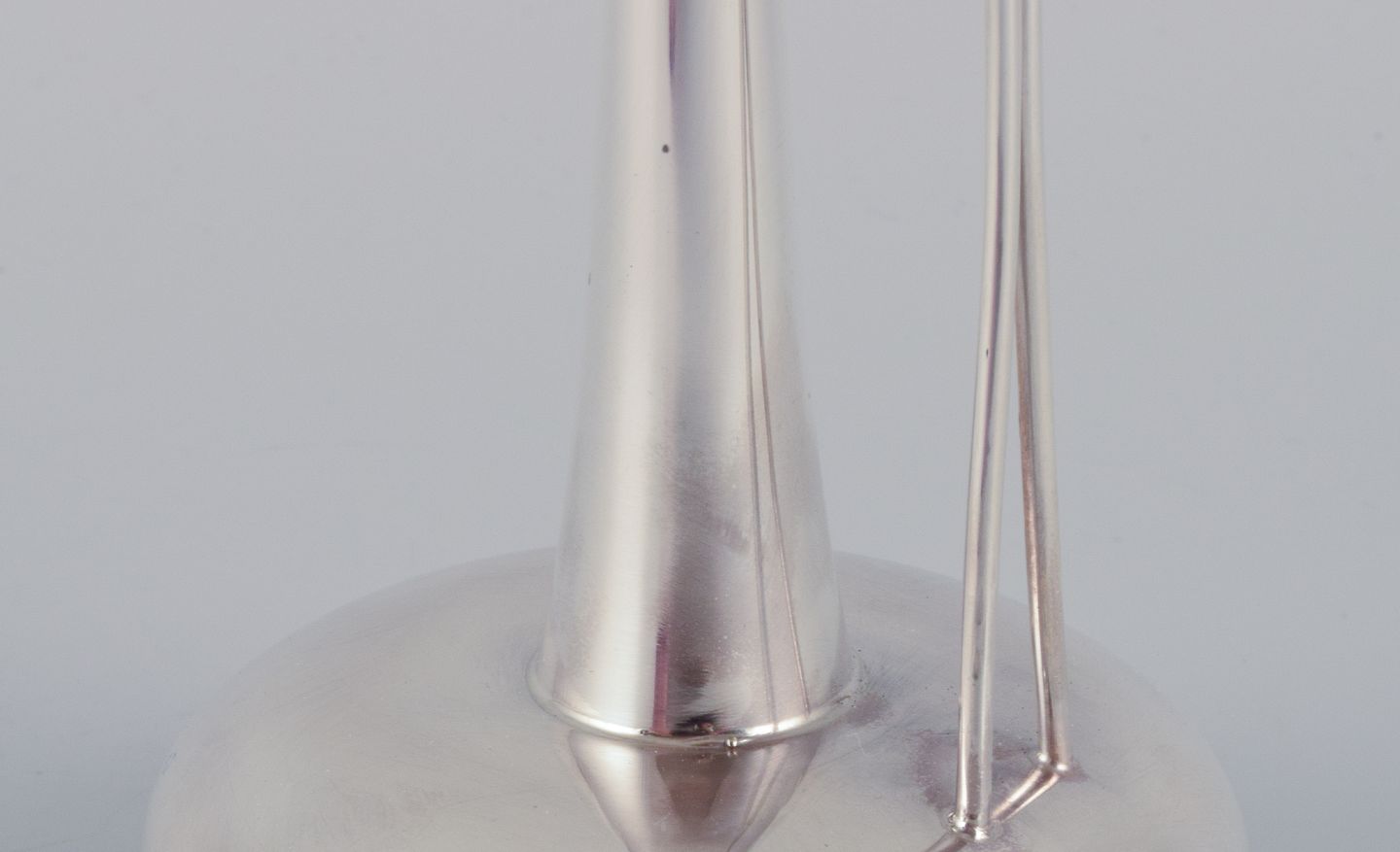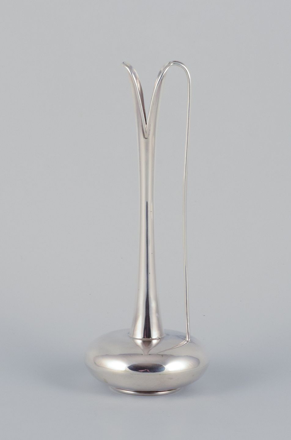 Frantz Hingelberg, dansk sølvsmed. Modernistisk kande i sterlingsølv. Stilrent design. Midt 1900-tallet. Stemplet. Perfekt stand. Mål: H 20,5 cm. x D 7,5 cm.