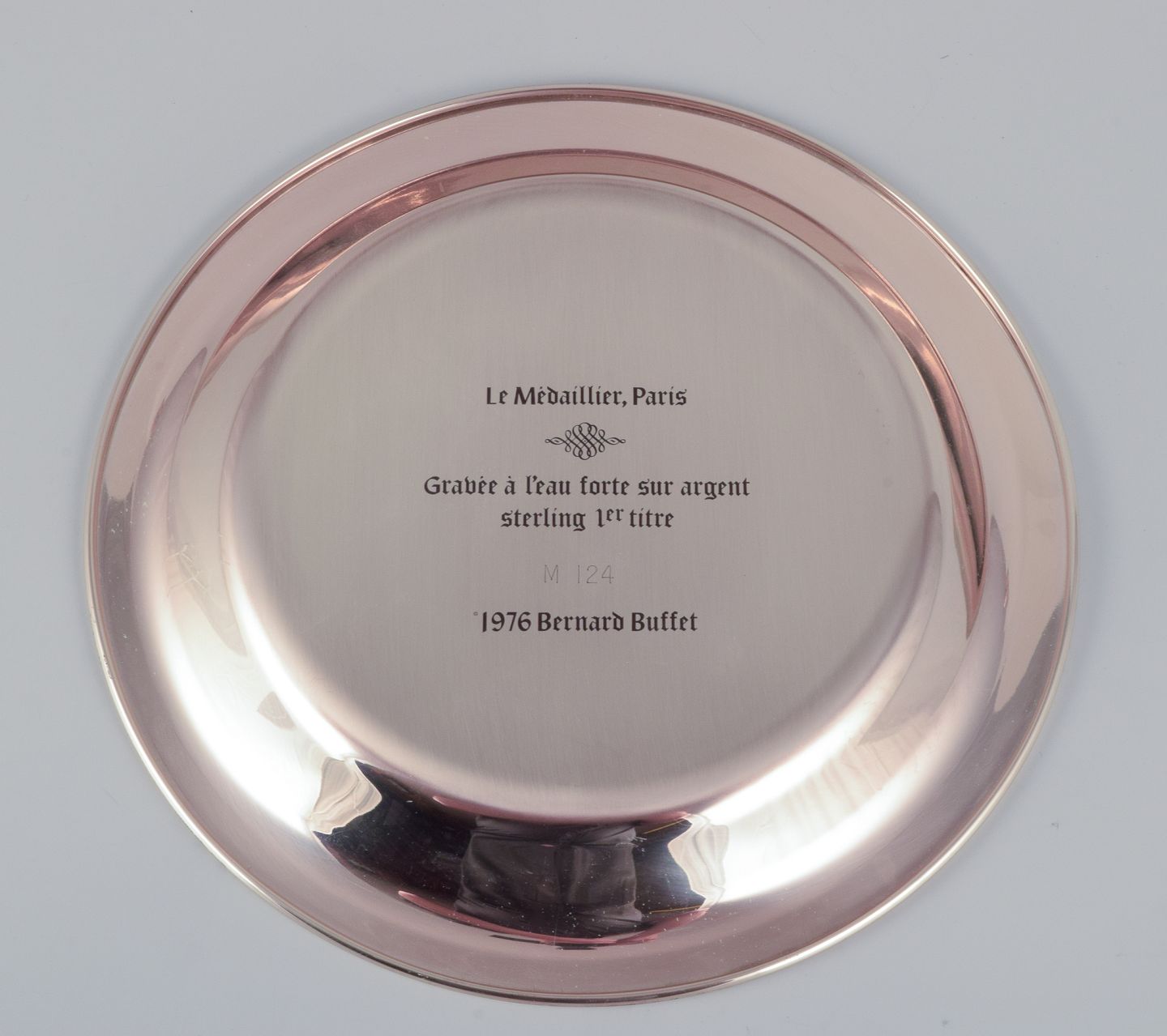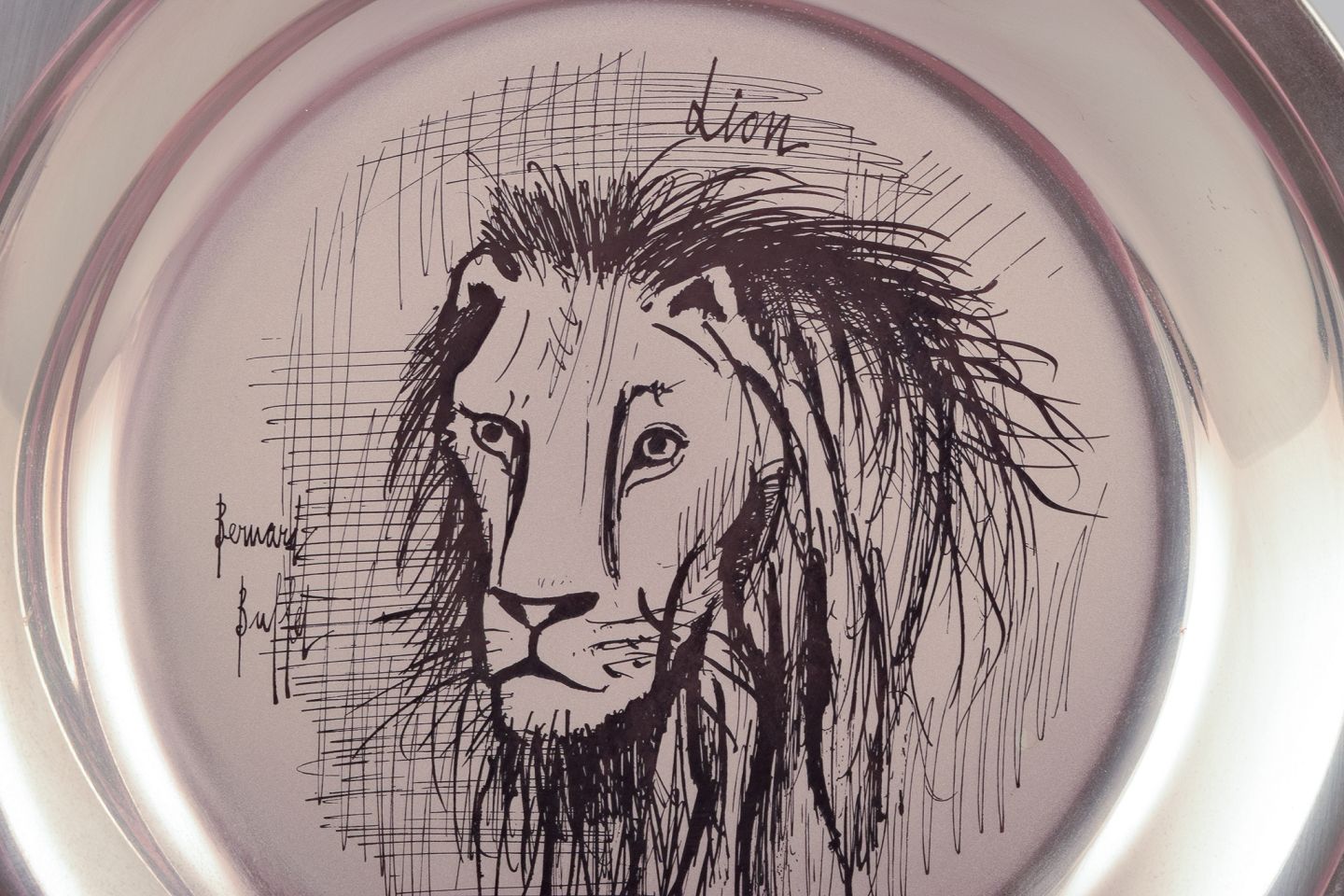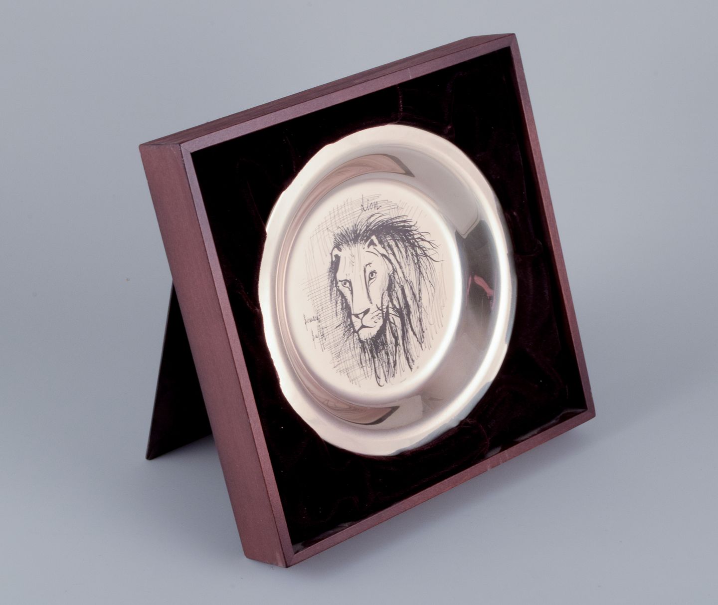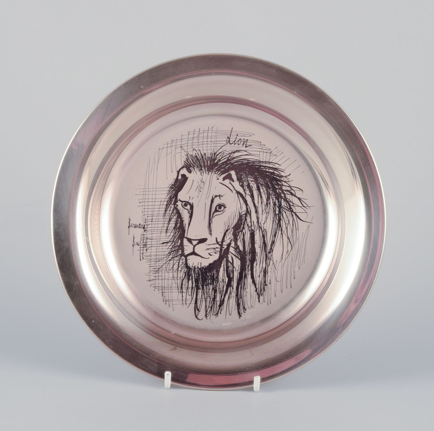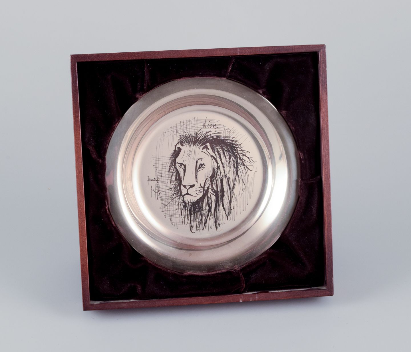 Bernard Buffet (1928-1999), fransk kunstner. Årstallerken i sterlingsølv. 1976. Motiv af indgraveret løve. Stemplet på for og bagside. Original æske. Perfekt stand. Mål: D 20,3 cm. x H 1,8 cm.