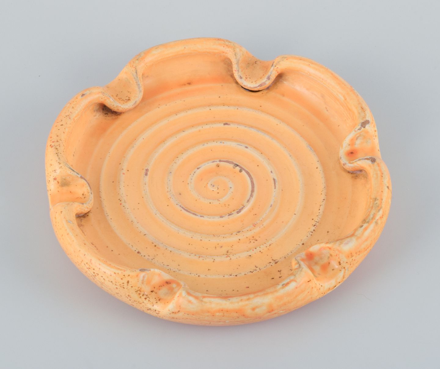 Kähler ceramic dish in uranium glaze. Spiral-shaped motif. Approximately from 1930. Marked. In excellent condition with a few minor chips on the edge. See photo. Dimensions: Diameter 20.5 cm x Height 3.5 cm.
