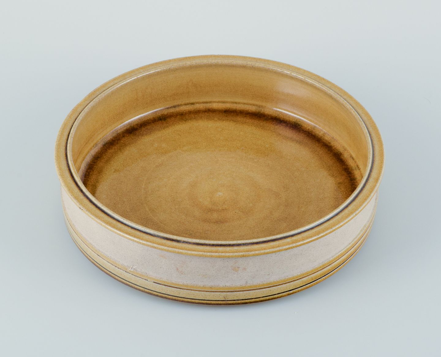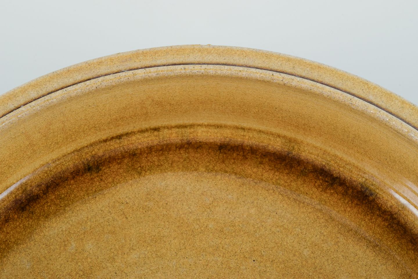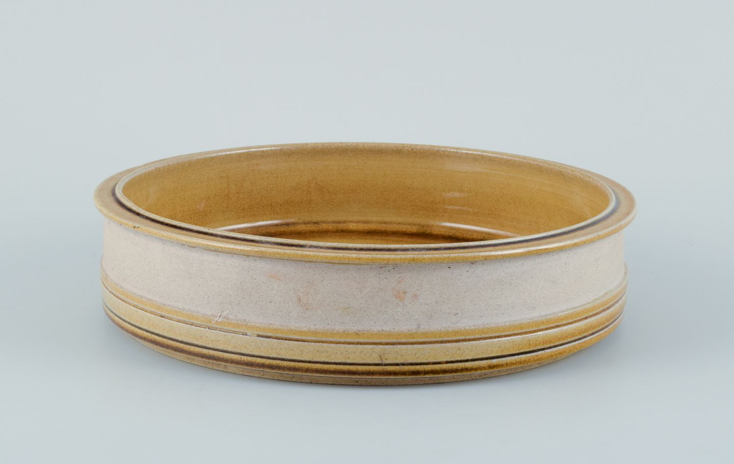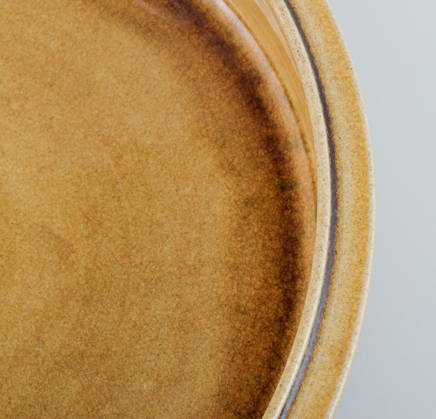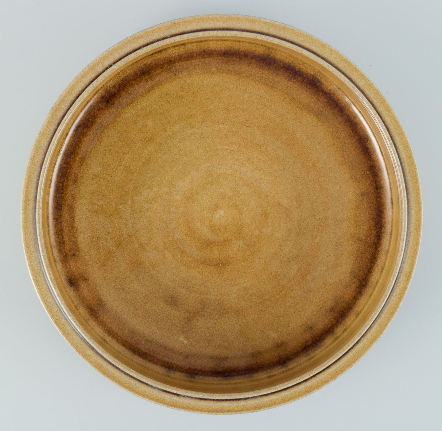 Nils Kähler for Kähler. Large ceramic bowl in modernist design. Uranium yellow glaze. Ca. 1970. In perfect condition with natural crackling. Marked. Dimensions: Diameter 25.0 cm x Height 6.0 cm.