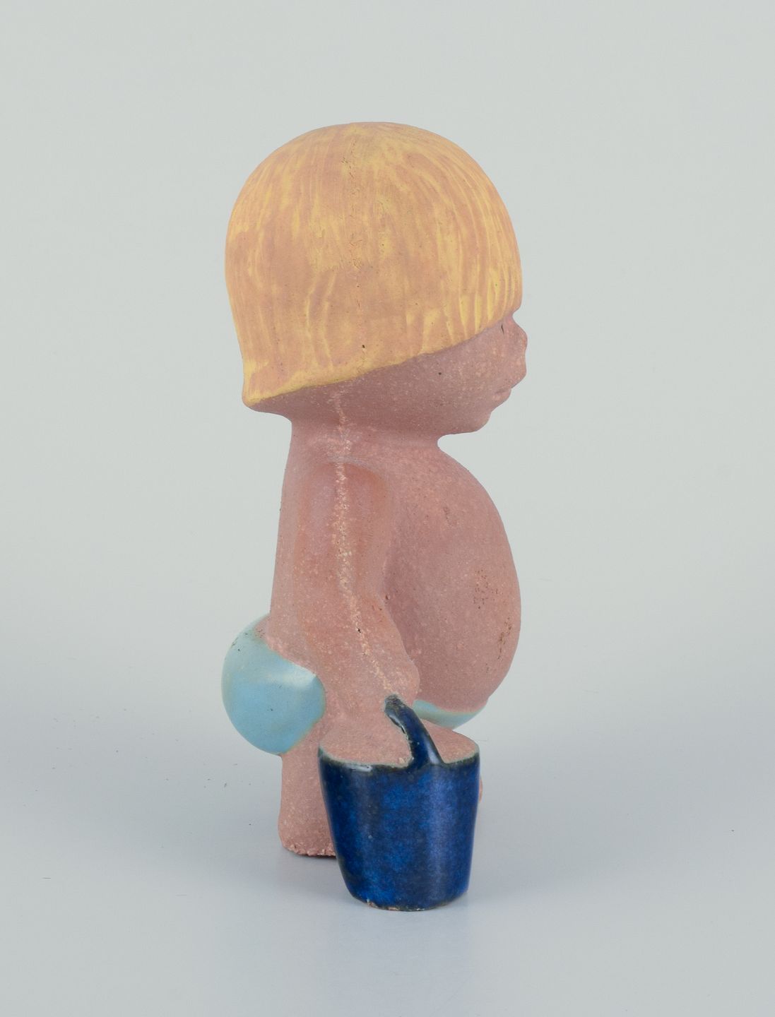 Lisa Larson for Gustavsberg. Stoneware figurine from "Children of the World" series. Boy with a bucket. In perfect condition. Marked. Dimensions: H 12.5 cm x D 9.0 cm.