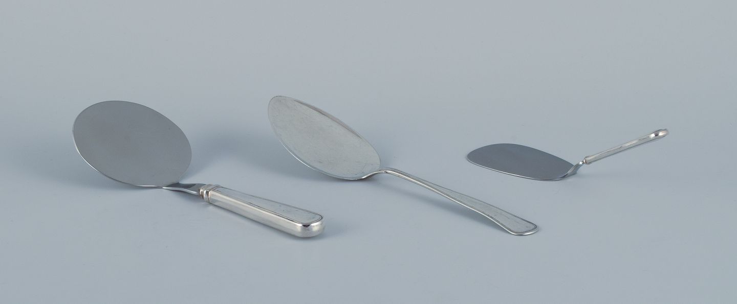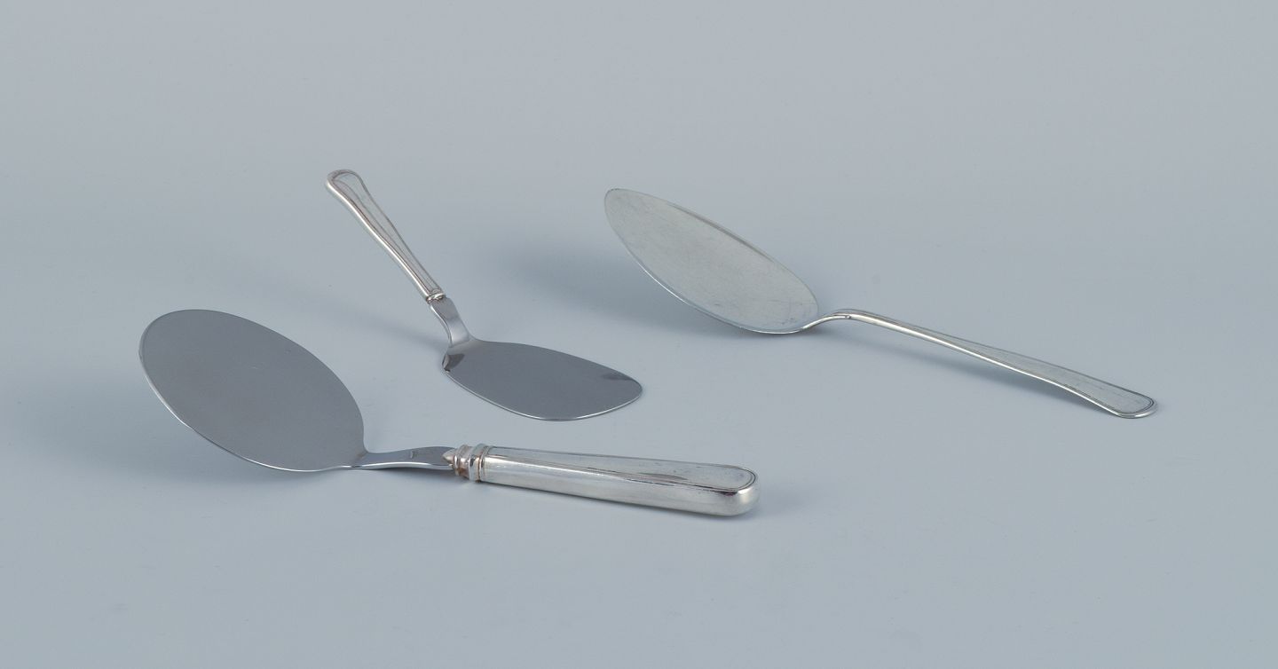 Cohr, med flere danske sølvsmede. Tre dobbeltriflet serveringsspader i tretårnet (830) sølv og rustfrit stål.