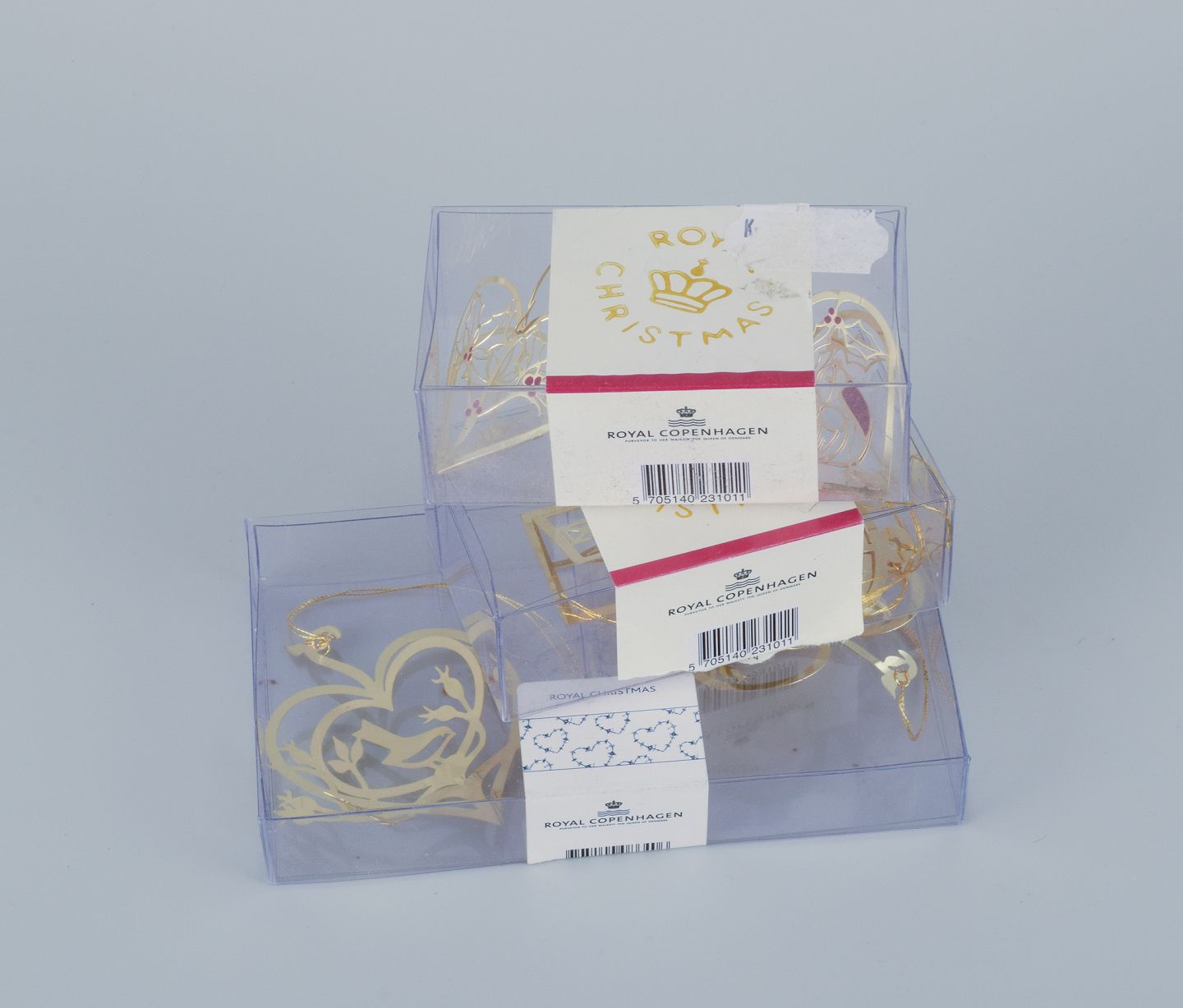 Royal Copenhagen ”Royal Christmas”. Ti juledekorationer i messing til ophæng på juletræ og i vinduet.