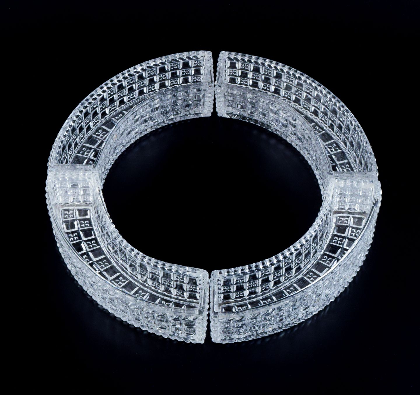 Val St. Lambert, Belgium. "Surtout de Table" consisting of four pieces of crystal glass in ribbed design. Art Deco style. 1930s/1940s. In perfect condition. Marked. Total diameter: D 30.0 cm x H 5.0 cm.