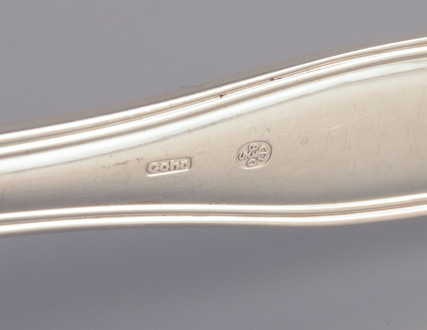 Cohr, dansk sølvsmed. Dobbeltriflet serveringsske i tretårnet sølv (830). Ca. 1940. Stemplet. I flot stand med almindeligt brugspræg. Mål: 20,2 cm.