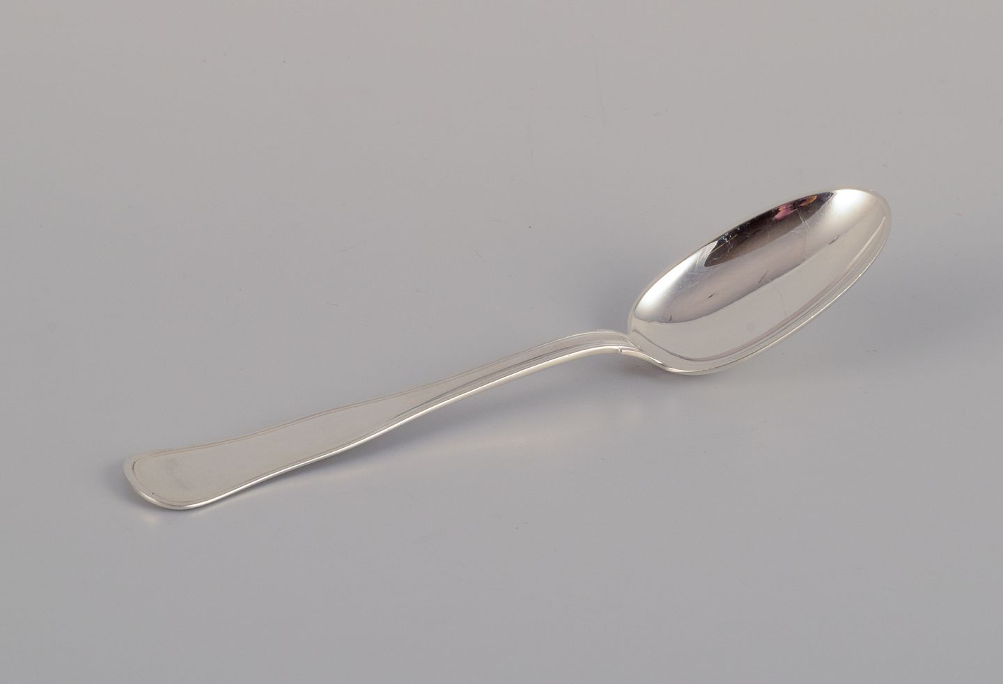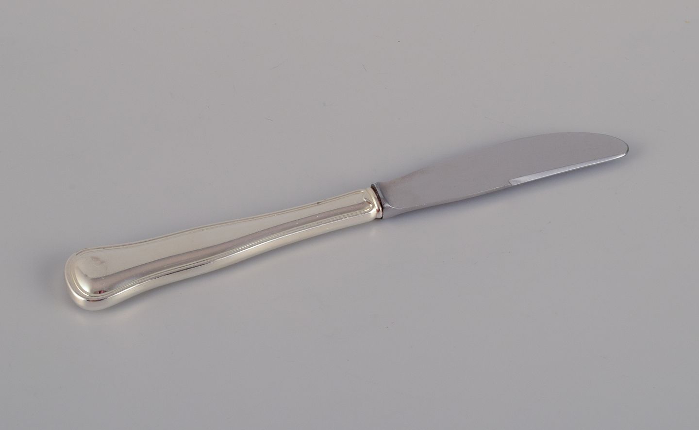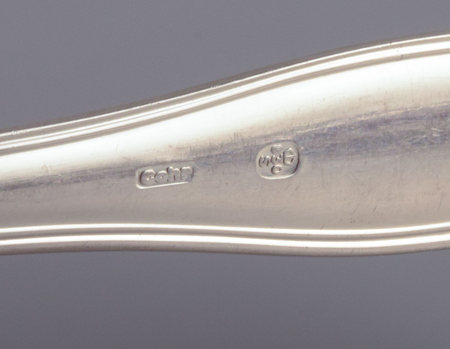 Cohr, dansk sølvsmed. Dobbeltriflet. Komplet tolvpersoners frokostservice bestående af tolv frokostknive, tolv frokostgafler og tolv dessertskeer i tretårnet sølv.