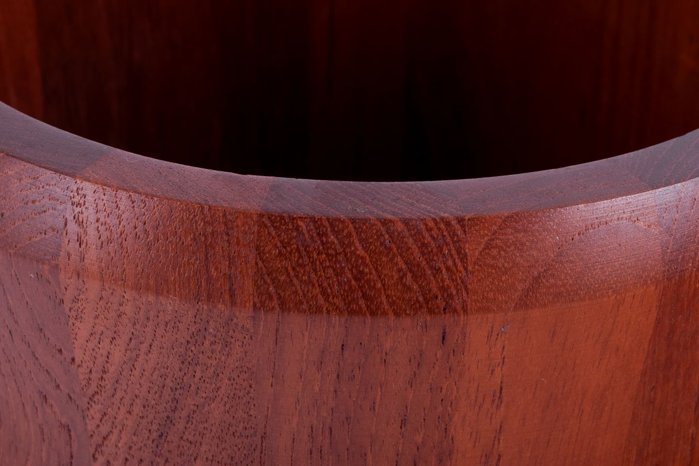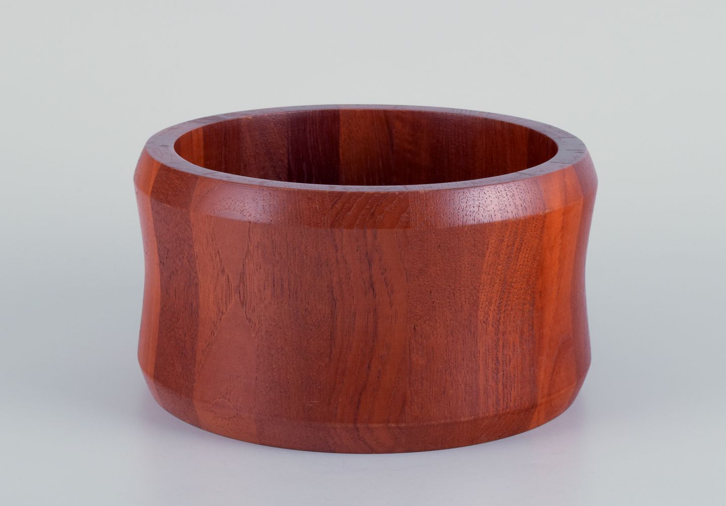 Kjeni, Danmark. Skål i teak. Stavlimet. Farvespil i træet.