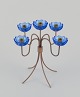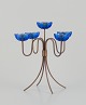 Gunnar Ander for Ystad Metall, Sverige. Høj lysestage i messing og blåt kunstglas formet som blomster. Til fem lys. 1950'erne. I flot stand med patina. Mål: D 21,0 cm. x H 22,5 cm.