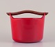 Timo Sarpaneva for Rosenlew, Finland, støbejernsgryde i rød emalje med træskaft.