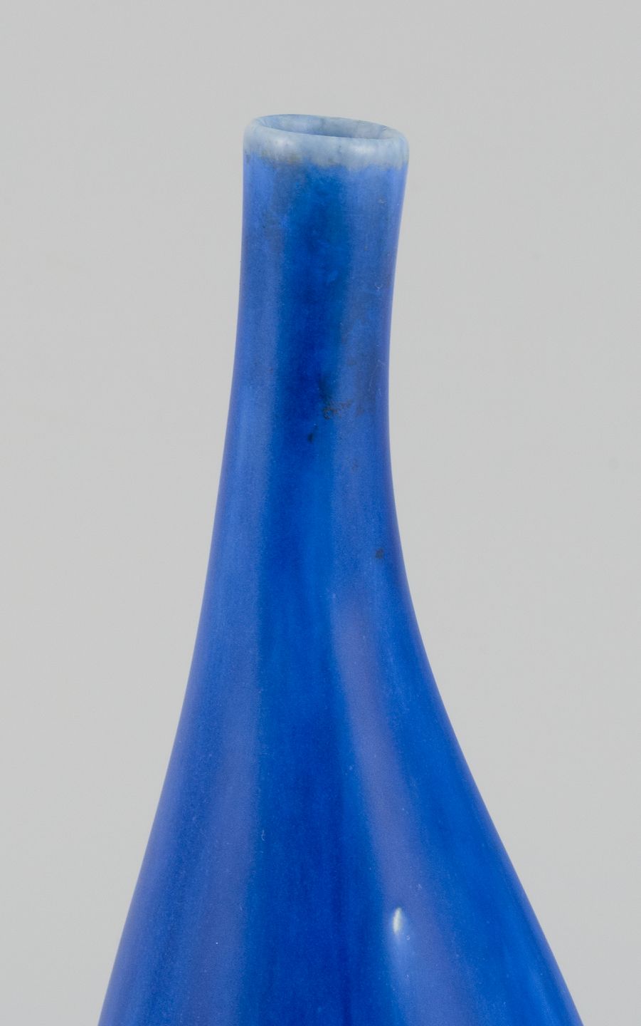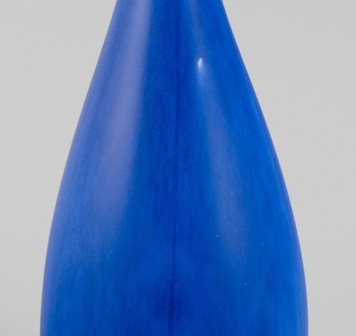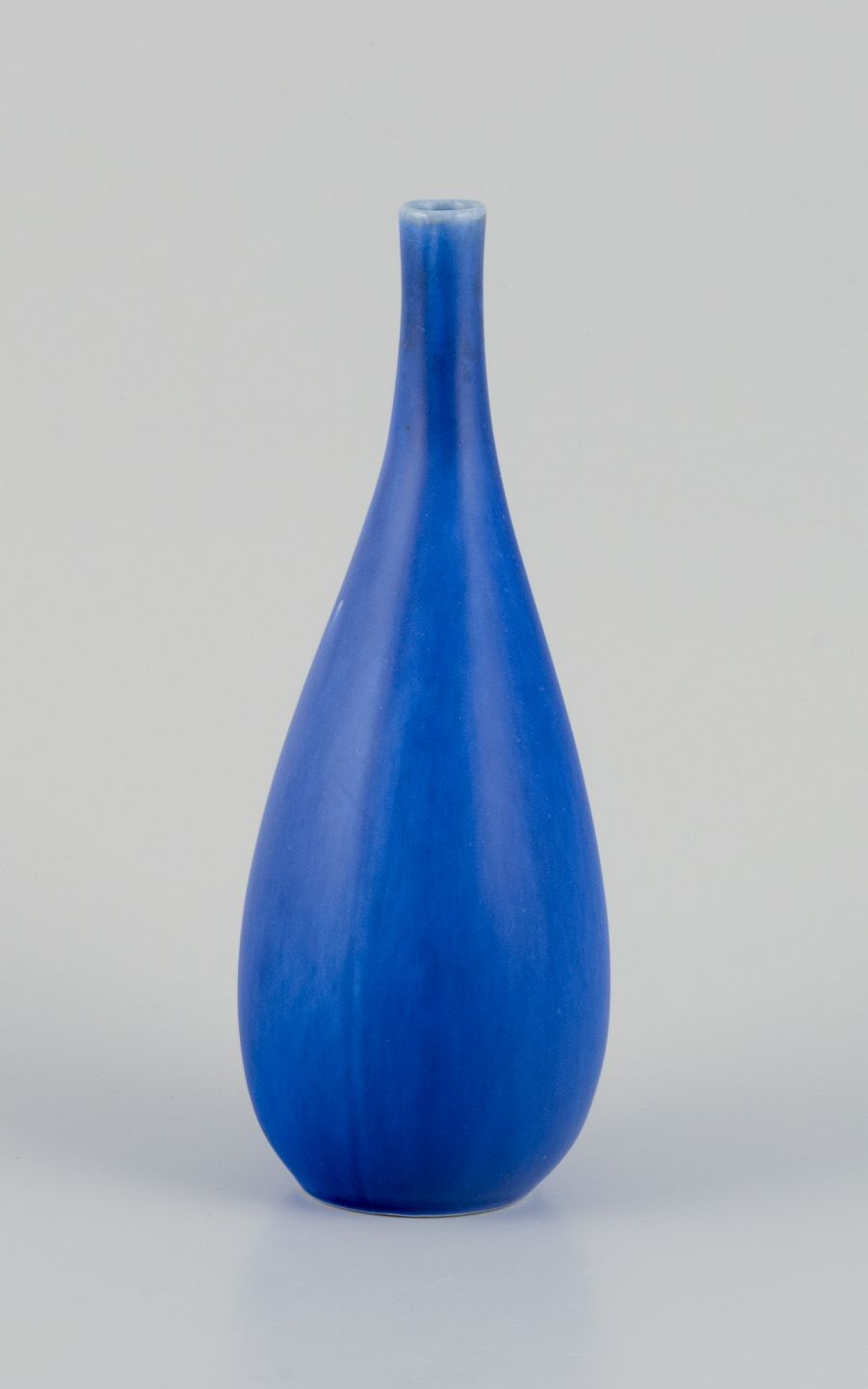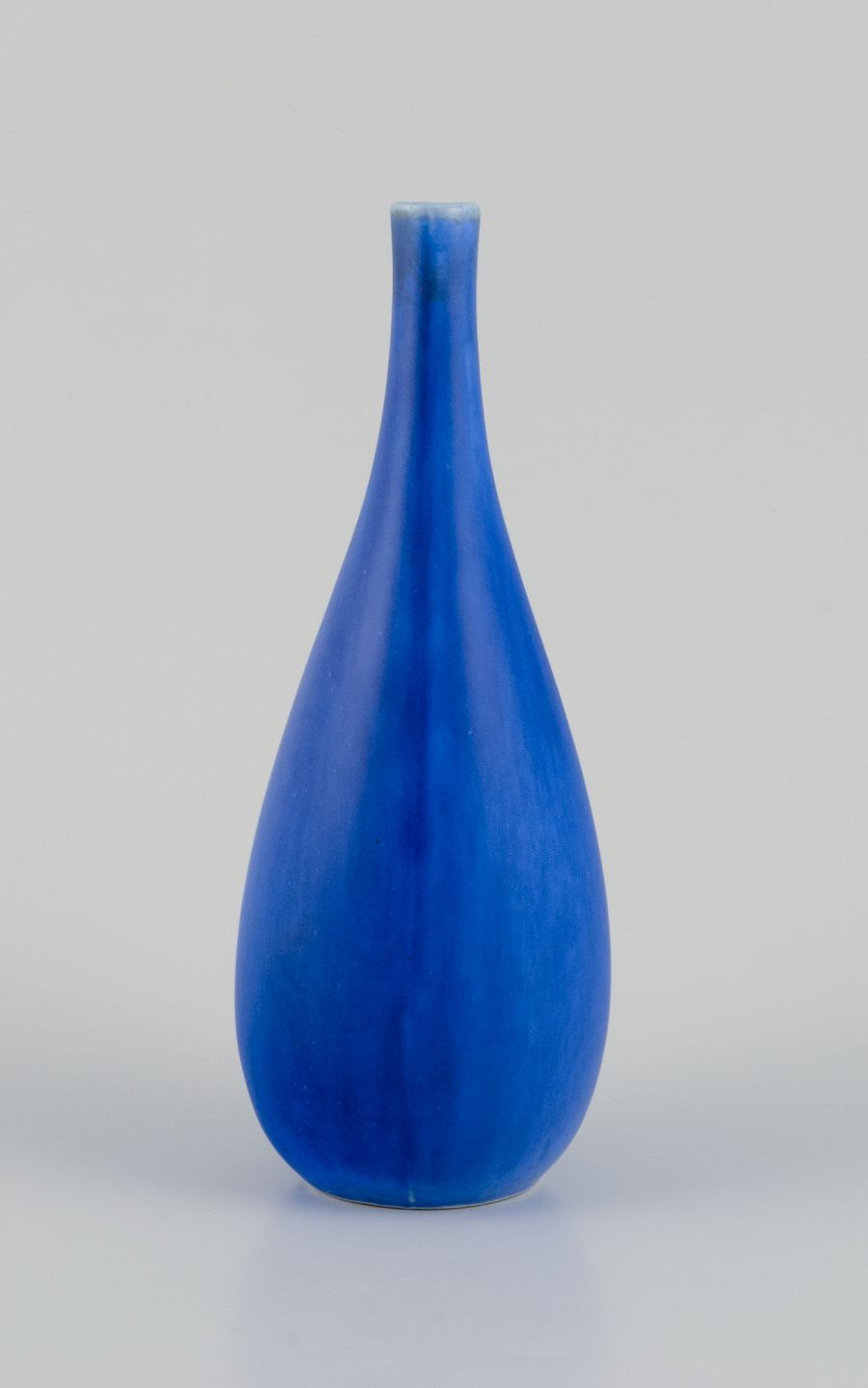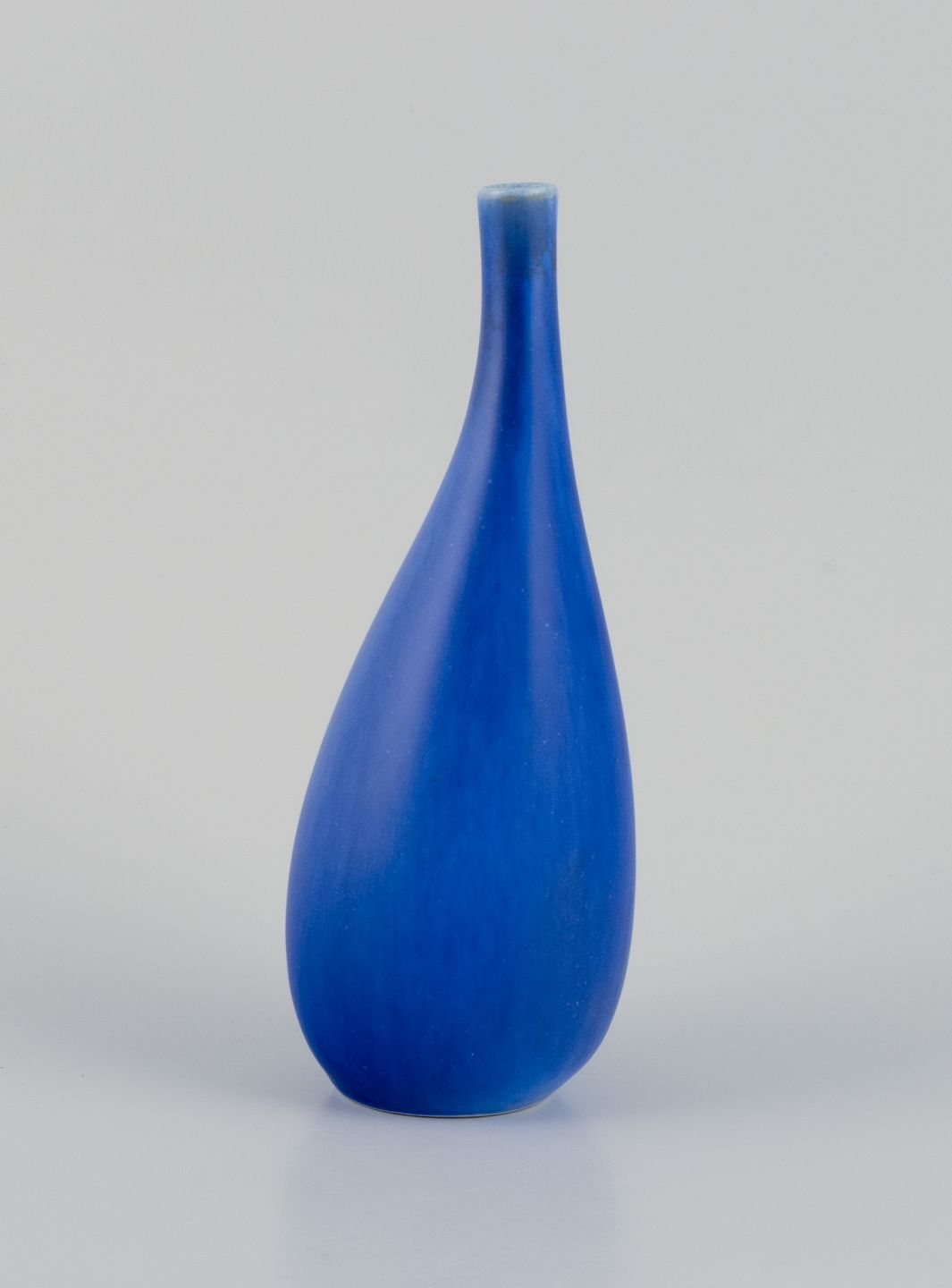 Stig Lindberg for Gustavsberg, Sweden. Ceramic vase with a slender neck. Glazed in blue tones. Approximately from the 1960s. In perfect condition. Dimensions: Height 22.5 cm x Diameter 8.5 cm.