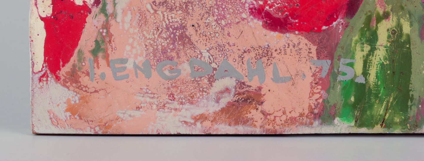 Ingvar Dahl, svensk kunstner. Olie på plade. Abstrakt landskab. Blank overflade. Titel: ”Amaryllis med vita inslag”. Signeret og dateret ’75. Perfekt stand. Mål: 21,5 cm. x 25,5 cm.